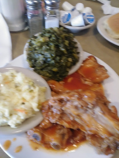 I used to eat here 2 or 3 times a week when I worked in town. As I thought about what I wanted for lunch today, I remembered they had backbone and collards on Fridays. I thought the buffet ended at 2:30, but when I arrived at 2:05, they were in the process of taking it down. When the owner saw my disappointment, she directed the staff to pause long enough for me to fix a plate. I chose 2 pieces of backbone, some collards, candied yams, and stewed potatoes. The potatoes were mush due to being on the heated bar for an extended time, but I was okay with them. To say I was shocked when the waitress told me my cost was $23.47 would be a great understatement! I questioned her, and she said I had heavy food. Talking about being very upset, well I was! To eat inside for buffet was only $13 and change. The average person would have eaten way more than what I put on my plate! Before my health issues, I would have eaten two plates that size before moving to desserts.