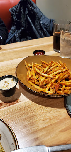 Finally after an hour, our entrees got delivered…. But not our appetizer. Our server dropped our entrees off so quickly we weren’t able to ask about our appetizer but were so hungry at that point we all just wanted to dig in. My spouse’s steak was medium well (at best, he had ordered rare), had no Bernaise sauce on then steak, and only if you consider coleslaw a “seasonal vegetable” would it have come with both sides. My burger was well done even though it was ordered medium rare. After all 3 of us ate what was edible and continued to wait for our server, my 59 year old mother gave up and went to actually find her and ask her to bring our appetizer that we never received. 20 minutes later she dropped off the Cajun fries, but no still garlic aioli. It took another 5 minutes to get the garlic aioli, at that point we were beyond ready to leave. We boxed up the fries and aioli (definitely not any of the other food), paid the bill, and left.