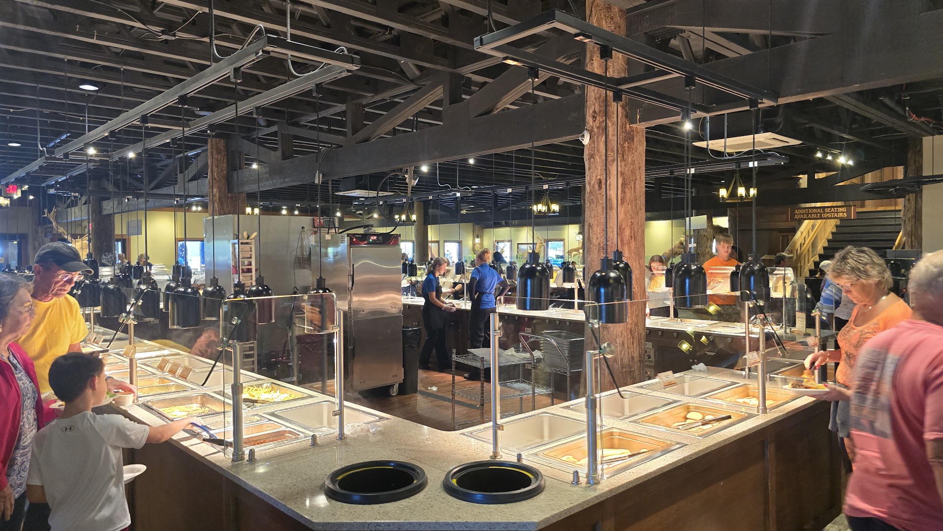 Read moreThis is an okay restaurant. Considering it is inside the arc encounterpark and you are paying to get into the ark encounter just to get in to be able to go to this place, plus you're being hit for another 20 bucks a person to eat here, it's just all right. The place is completely self-service. You get your food, your drinks, etc. Basically, a server will come over and greet you when you first sit down. But that's it! Once you pay, you're on your own! The buffet is quite large, and the food is pretty decent. Especially for buffet food. Don't expect anything awesome, but it is decent for buffet food. There is a wide variety of food including a large selection of vegetables which are quite good I might add. They also have breads, soups, salad bar, and meets for the carnivorous among us. I have to say that I find it kind of sadly ironic that a park that is themed around the arc which was a structure to save animals as a restaurant that serves a wide selection of animals on their meat section of their buffet. But, it is what it is, and we live in a carnivorous leaning society in the western world today. but you will find a large selection of vegetables if you are vegetated vegetarian like myself. I cannot speak to the appropriate nature of many other vegetables for vegans as I don't know what stuff is Friday in here. I do know there are other small food vendors on the property that boast of using beef tallow for their fries. But I don't know about this place. It's okay if you're in the park anyway. But it's...
