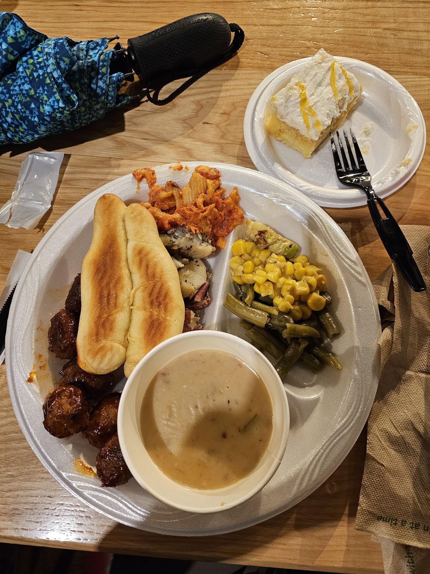 The food, every single item we tried, had an amazing flavor. I started out with a piece of fried chicken (white meat), which was tender, juicy, and had the most amazing flavor I've experienced. I don't know what spices they're using, but I can only say to keep on doing it! I also tried 2 BBQ meatballs. My son selected the pot roast and mashed potatoes. When he bit into each of them, he was so amazed by the flavors that I wish I'd taken a picture of his expression. He literally stopped eating and let the food rest in his mouth.