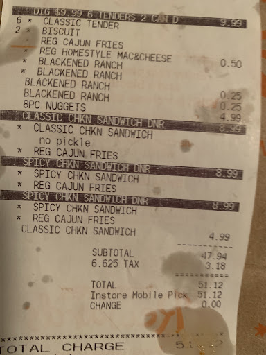 So I went here on a Friday night at around 7:30 and wanted to order two orders of their mild five piece tender combo. While waiting in the drive thru, I saw three workers come out the back door carrying a cardboard box and spent about a minute outside after bringing the box out there despite the drive thru being very busy. After waiting in the drive thru for fifteen minutes (only behind three cars after two other cars left) it was finally my turn to order. After driving up to the terminal, it took another five minutes for someone to ask me for my order. When she finally asked me, she was mumbling and impossible to understand. After she decided to speak audibly, I asked for my mild tenders and she told me they only have spicy or blackened currently and there would be a wait for the mild tenders. So I tell her that I'll take spicy tenders and she said they don't have any of those either after just telling me that they did have them. At this point I told her "Thank you" and drove away. Don't bother wasting your time here. Take the trip to Popeyes in Mount Laurel. You'll still end up getting your food faster and they'll actually have what you're...