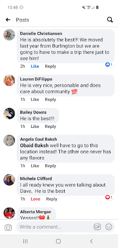 While I have found all Rita's to serve flavorful product and have customer friendly staff, our local Rita's here in Willingboro NJ from a five star level to something far beyond! I love their many colorful and so delicious ice flavors (each captures the fruit of its name perfectly - just tried a sample of the Mango: "Wow!") and how great is it to be offered a FREE sample each time before you order? But that's just 5-stars. Where Dave, the shop owner, goes above and beyond is both his selection of great staff, kids who are encouraged to stay in school and go on to college with support of not only their job here, but with his personal concern for each and his mentorship! Dave is not only the owner/boss teaching young staff the disciplines of great friendly customer service that will carry them on in their later lives, Dave is also a blessing and father to each of them. Even when someone screws up, he doesn't fire them, rather he coaches them on the lessons of live, encourages improvement and gives them that second chance too rare in employee life these days.