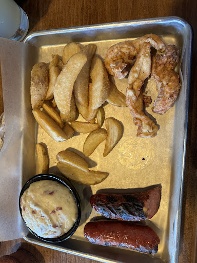Read moreWe have been there three times the first time we went there we were not impressed whatsoever the last two times that we've been there the waiter and the waitress have been very informative and were very kind sat there and talked to us when we wanted them to and left it alone the rest of the time the food was very well cooked it was delicious nothing tastes old everything was very fresh we got the big platter which fed my wife and I and we took some home and it fed us for two more days it came with brisket ribs chicken corn cornbread muffins beans coleslaw and I'm probably forgetting something just delicious the drinks if you like to have a drink with your dinner than mixed drinks are very tasty I recommend the Smokey Long Island it actually smells like campfire it's pretty awesome if you're looking to go there on a couple bucks probably not a good idea when we were there for our for drinks and we got the appetizer platter and the platter that we shared it came to around $90 the sampler platter was...