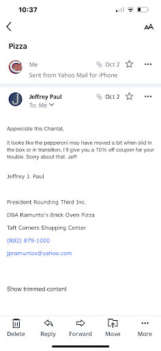 Read moreHighly disappointed and extremely aggravated at how we were treated when we called about our order. We were treated like we’re lying about how bad the pizza looked. Guy on phone was highly rude and condescending,I was given a email address to send a proof of it to him,because he said he made it it perfect wen it left ,then was told that it must’ve got messed up after he made it, and during delivery, but if that was so,then cheese also would’ve slid,. If I wanted a half pep and half cheese I would’ve ordered that… pizza was extremely dry,basically tasted like cardboard.. I was an offered 10%😂😂discount after I had sent the picture…. Why would I want to order again from a place that treats paying customers like that over an issue that was their mistake and act like it was no big deal. $30(with tip) is a lot of money to spend to be unhappy and treated rudely… I declined discount and declined to get my money back…. All I wanted was a good pepperoni pizza. So still on the hunt...