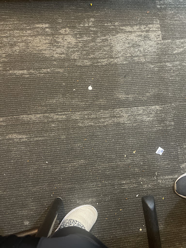 It was very dirty, my son is 4 and got on the floor to pick something up and it was disgusting, more than just the current days mess. Around the edges by the wall was really bad, there was food that had been there a long time. My husband said the mens bathroom was gross. Nobody clear plates at all while we were eating in the entire dining room that I could see.