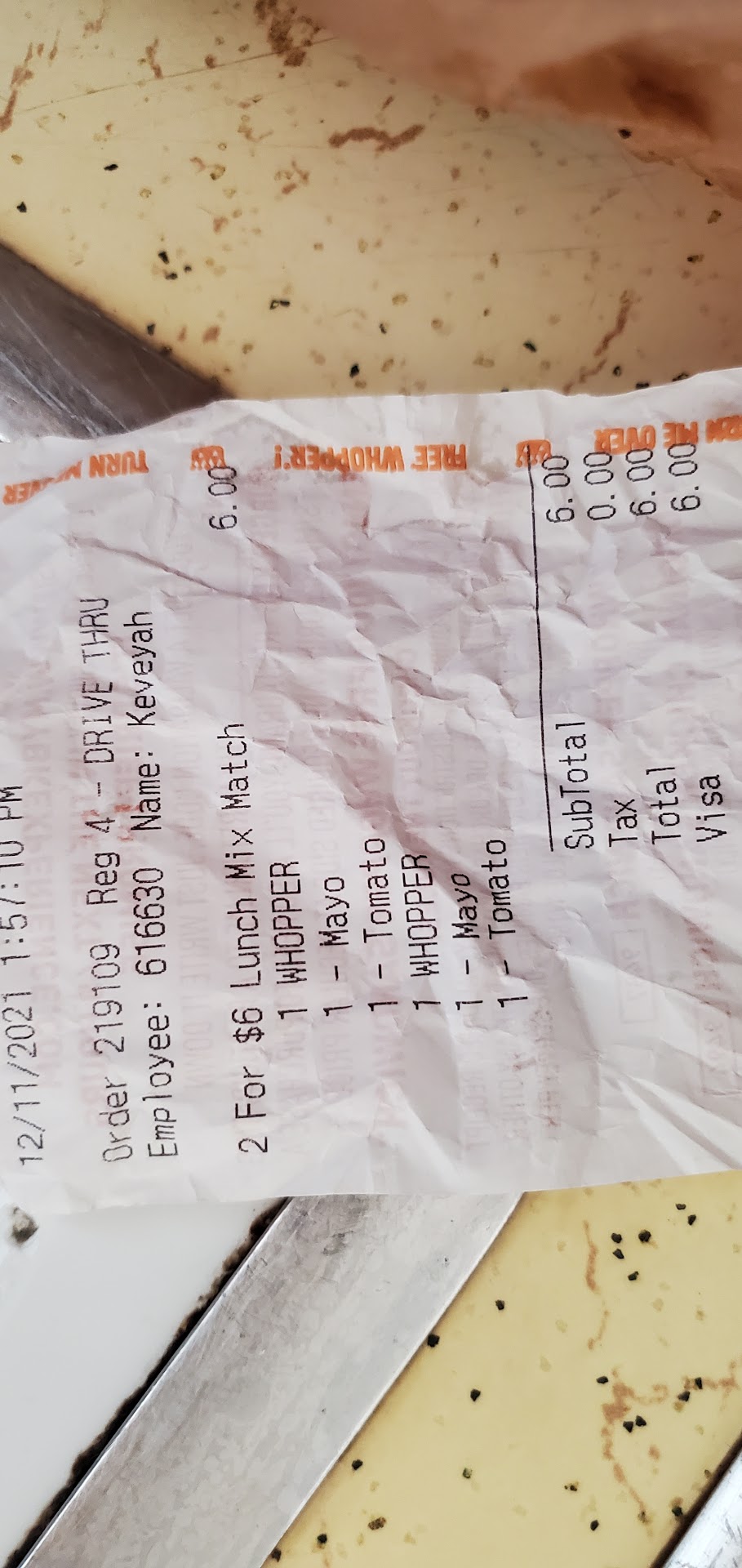 Read moreFrom the time we pulled into the drive thru till getting our food it was the worst. We start by asking for a kids meal and were asked is this all as my wife starts asking for a meal. This continued for the next 3 items that were ordered. As she was adding the final item a total was give bwfore she even finished ordering. Someone else came over the speaker and said please continue that wasnt the original order taker. As we pulled up in a rude voice we were given our total again. It then took 10 minutes for them to give us our food. Mind you the parking lot and drive thru were empty. When we received order food we were then told they added one extra burger and needed it back. Which is fine but if I'm the person behind me not sire I would want it. As we started leaving we realized that we were missing parts of our order and wr just decided to go as we won't be eating here anymore. As it once the first or 5th time we have had...