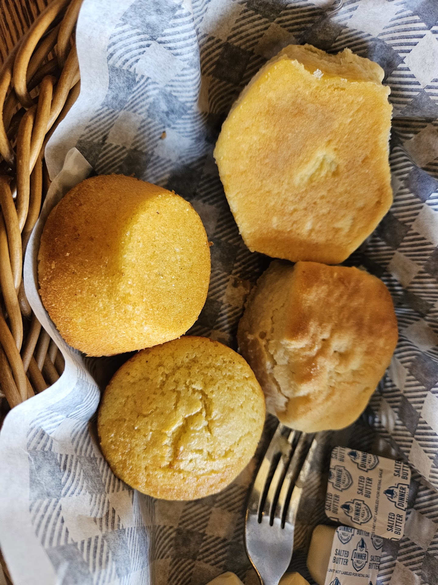 Read moreThe food at Cracker Barrel was amazing!!! The have new items on the menu for summer that are a must try. Like the Rocket Bomb Mimosa which is a Strawberry mimosa with a red white and blue bomb popcicle sitting in it. It was amazing!!!! This was no watered down drink!!! They also gave me the remaining champagne left in my mini bottle. This was an added plus! The Southern fried chicken was amazing as well!!! The portion size was 4 pieces!! I took home most of my food!!! The bacon Mac and cheese was excellent. They also had Sweet and Spicy ( I may have the name wrong🤭) Chicken tenders that were SO good!!! Finger licking good to be exact!! OK now, I know this seems like I ate a mountain of food, but wait wait....this was a cheat day, and all of this wasn't my food, I tasted my daughter and best friends food, so don't judge me, and if you do, meh...i like to eat...LOL🤣. OK, so back to it. If you are one who like hushpuppies...GET THEM!!!! That's all I'm saying about that🤗. The iced latte was a sweet creamy dream for anyone like me who loves coffee drinks. It had loads of whipped cream on top, and a caramel drizzle within that was so good. I kept trying to snatch a dumpling from my daughters bowl when she wasn't looking because they were fantastic!!! I've had my share of homemade and chef made dumplings, these are definitely in my top 3!!!! Delicious. But best of all by far was our server Rebekah T. She went above and beyond to give us amazing service. She was kind, knowledgeable, attentive, patient, funny, and just overall absolutely phenomenal!!!!! Everyone in the service industry could learn a thing or 10 from her!!!! She is definitely the reason we will be returning to this location...