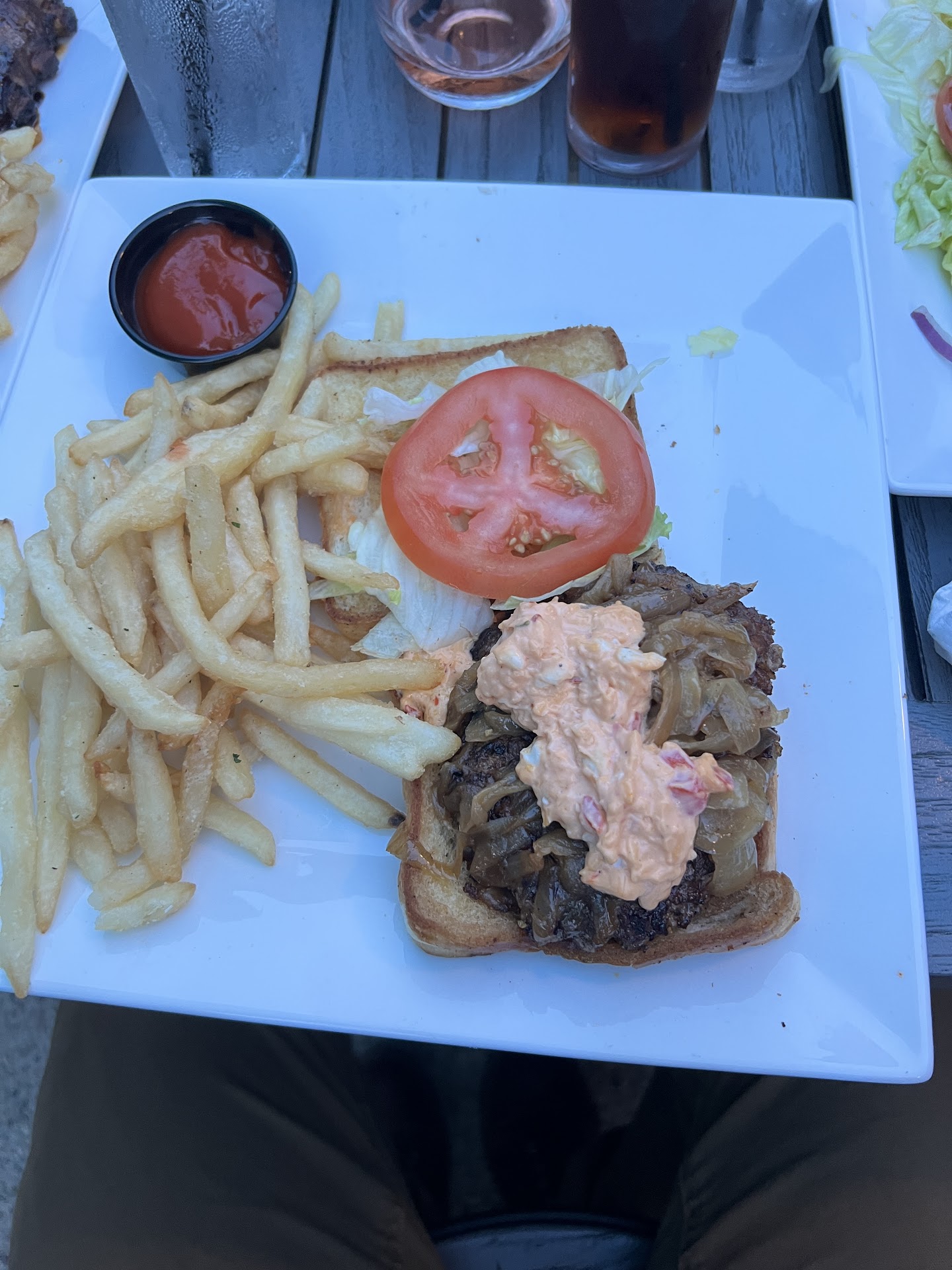 Read moreWe tried Duke and Boots for the first time last night. Decided to sit at the inside bar so we could watch the baseball game. We were the only ones at the bar, for a Saturday night at 7:30. There were two bartenders one was sitting at the end of the bar with another employee. We sat there for at least 5 minutes and we’re not even greeted, I was going to wait to see how long this was going to take but when the other bartender completely ignored us and was talking with the other employees. I asked if anyone was going to wait on us. He came over right away and was kind. Ordered drinks and food. I received silverware set up but my husband did not, I guess not included with a 21 dollar burger. They put the game on for us on all the TVs, another couple came in and wanted the hockey game on, knowing we were watching the Basketball game he changed the TV right in front of us. We asked about the pecan pie and ordered, after at least 20 minutes never got it and asked for our check. Very disappointed and I really liked the atmosphere, need to spend more time training your staff if you want to charge...
