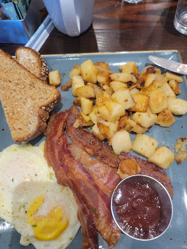 Read moreFor a Sunday morning the wait to get a table was acceptable for a party of 7. It was a "perk" that there was a coffee urn to help yourself to a small cup of coffee while waiting. Everyone in our party enjoyed there selections. My only negative was when I asked if I could have my seasoned potatoes without onion and was told no. Also, 3 in the party asked for their potatoes to be crispy and were told yes, but, they came the same as everyone else's. My traditional order was nothing to brag about. Toast was not buttered very much, over medium eggs were small but cooked properly, bacon was ok. I'm not a fan of onion so potatoes were not much to say about. I left hungry, and only 1 in our party took a small amount home with them. Tables and silverware seemed clean. All orders that contained toast also came with a large condiment cup that was full of a jelly that you had no choice of flavor. It seemed to be there to fill the plate so you thought you had more food on it than was...