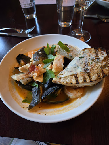 Read moreWow, great service, ambiance and most importantly, expertly prepared food! My husband and I visited on a Saturday night, definitely make a reservation, the earliest reservation we were able to get a few days before, was 7:45. There was mandatory valet parking ($10), out front. There was a sign stating that lot parking was full. We were warmly greeted by each and every staff member that we encountered from the valet, to the host stand, and subsequently to our table. Our water glasses were filled, as soon as we were seated. Our server, Clare, approached our table and proceeded to take our order. We ordered wine, to start. We then ordered bread and split a Caesar salad. The bread was fresh and warm, served with an olive spread and herb butter on the side. The salad was freshly made made, and included anchovies (optional) and roasted tomatoes, which was a nice touch. We proceeded to order entrees. I opted for the broken rice with shrimp. My husband ordered the Angus burger with fries. He was leaning toward the chicken diavolo, but changed his mind, when told the chicken was bone-in. Our entrees arrived a short time later. The broken rice was prepared perfectly. Nice ratio of veggies to rice, flavorful, topped with a soy cured egg yolk, and accompanied by 4 large shrimp. The serving was more than generous. My husband's burger was perfectly cooked, accompanied by hand-cut fries and a side of tomato aioli. I opted for desserts. The dessert options were plentiful, I chose the bread pudding which was just ok. I am a baker and a bit of a dessert snob. The bread pudding was underwhelming for me. The serving was small for $14, and there was just not the flavor that I had hoped for. 20% gratuity is automatically added to the bill, no additional tipping allowed for valet or service. The best part of our visit, the service! Clare was an outstanding server, she was attentive without being overbearing. The downside of our visit, the dessert. I highly recommend Julia's,...
