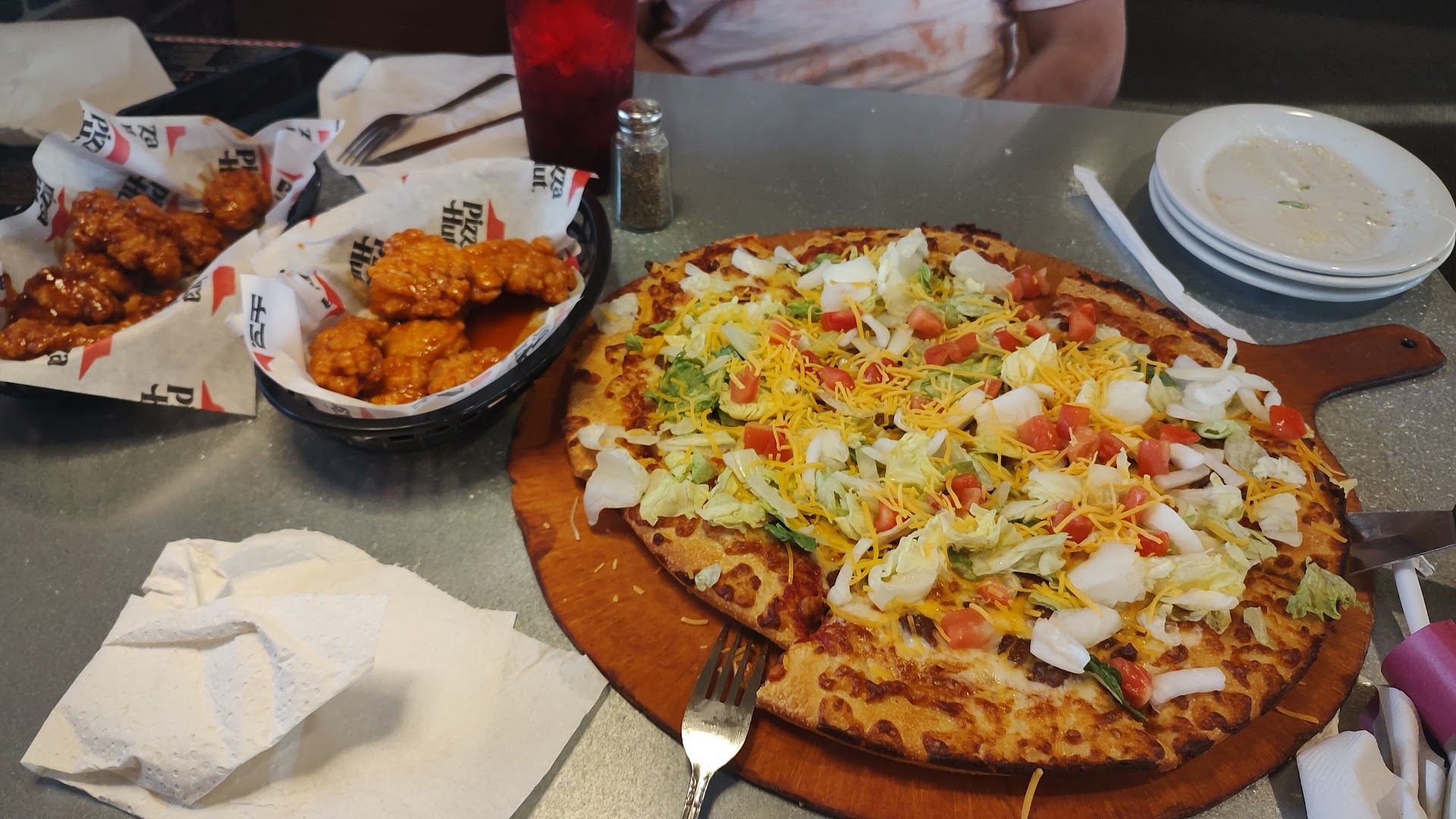 Read moreDISGUSTING pizza hut. I came in here with a group of special needs individuals for lunch. 2 of us got food the other 3 had their own lunch from home. I assumed since we bought food it wouldnât be a problem dinning in, but I was absolutely MISTAKEN. The employees stared at us whispering the whole entire time we were there making it obvious that we were not wanted there. Why not say something SOONER than just STARING at people eating?? My group was very quiet and well behaved the entire time we were there. Towards the end an employee with a red hat and black glasses approached us and said we could not come back unless we all ordered food and apparently he said one of my students licked his fingers and touched the food at the buffet. Now I completely understand how that would annoy a worker but the way he approached the situation was DISGUSTING and very unprofessional. I see what type of employees this Pizza Hut has employed and what type of people are NOT welcomed here. He made it VERY clear how much we were not welcomed back, then tried to proceed to tell me how I donât know how to control my students (even though we sat in the corner QUIETLY with NO disruptions whatsoever) over an incident that I would not have been able to prevent anyway?? He made it seem as though I had a bunch of wild animals that where out of control over 1 incident. Moral of the story, special needs people are not welcomed here. Period. I would NEVER recommend this store to anyone.The stares and whispers...