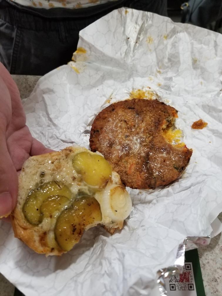 I took that first bite. Blown back by what I had just tasted, I looked over at my girlfriend with utter confusion, and mildly concerned. My taste buds were overwhelmed with sweetness. “What’s in this burger that makes it so sweet? It’s not the ketchup.” It was a very familiar sweetness, but I just can’t pin it down. I tasted the meat by itself, and that confirmed my suspicion, the sweetness is in the meat. It tasted like a bad sloppy Joe and a burger fused together.