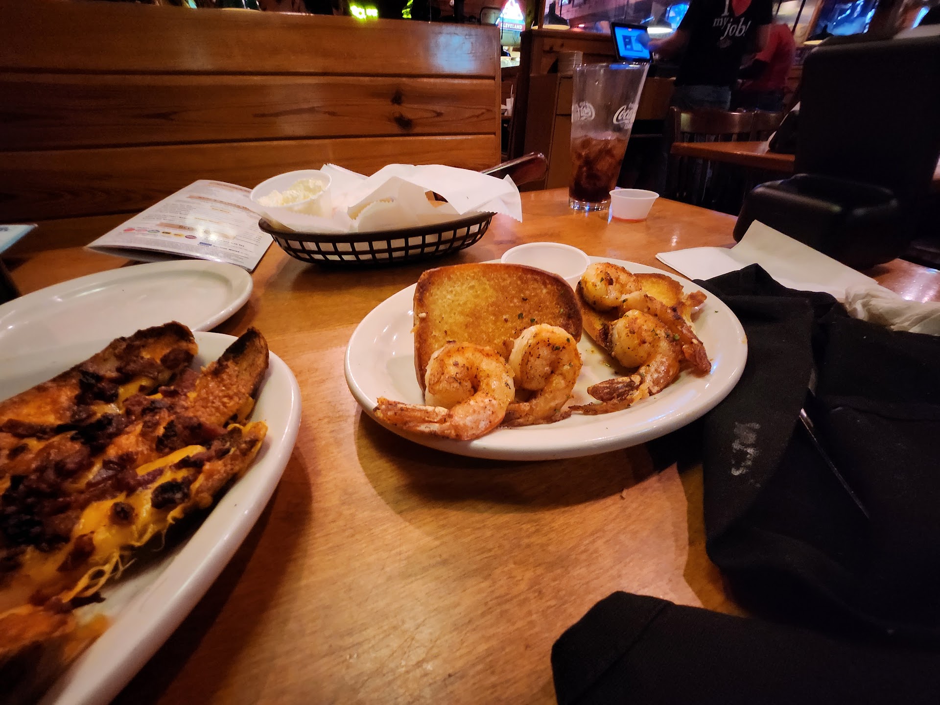 My group had an awful experience here. The server was nice enough, but incompetent. Our drink order was interrupted by an appetizer being slammed onto the table by someone who was gone as fast as they came. It wasn't ours, we were still ordering our drinks. Once it was sent to the right table, we finished our drink order, which then wasn't fulfilled until after our order was placed and we asked about them again. While placing their order one of our party had to repeat their entree, how it was cooked, and the dressing because the server was still writing the last order when she asked for the next person's selection. The drinks did not taste like they were made correctly. Whether it was the amount or what was in it, I don't know, but they weren't like anything I've had from any Texas Roadhouse previously. The fried onion thing had a puddle of grease in the bottom so the lower half was super oily with breading falling off. When we got our food, we placed another drink order, it took about 15 minutes. While we were waiting for the drinks we found that the ribeye came rare and smothered, it was supposed to be medium and not smothered. The strip came medium well on one side and medium rare on the other, it was supposed to be rare and the steakhouse salad came with the wrong dressing (you know, the one that had to be repeated). The ribeye was taken back and came back out overdone. The strip was taken back and off the check. This was all bad enough as the three of us just worked for 12 hours and our dinner took an extra half an hour between the screwed up food and glacial drink service, but if you mess up the food, don't ask if I want it fixed. Just fix it. I ordered something, and am paying for it. Deliver it, preferably the first time but at least at some point. I'm not telling you my $20-30 entree is wrong because it feels good to get it off my chest. It's because I want it fixed since it's not what I asked for. Why go, "Well, would you like me to take it back?". Obviously.