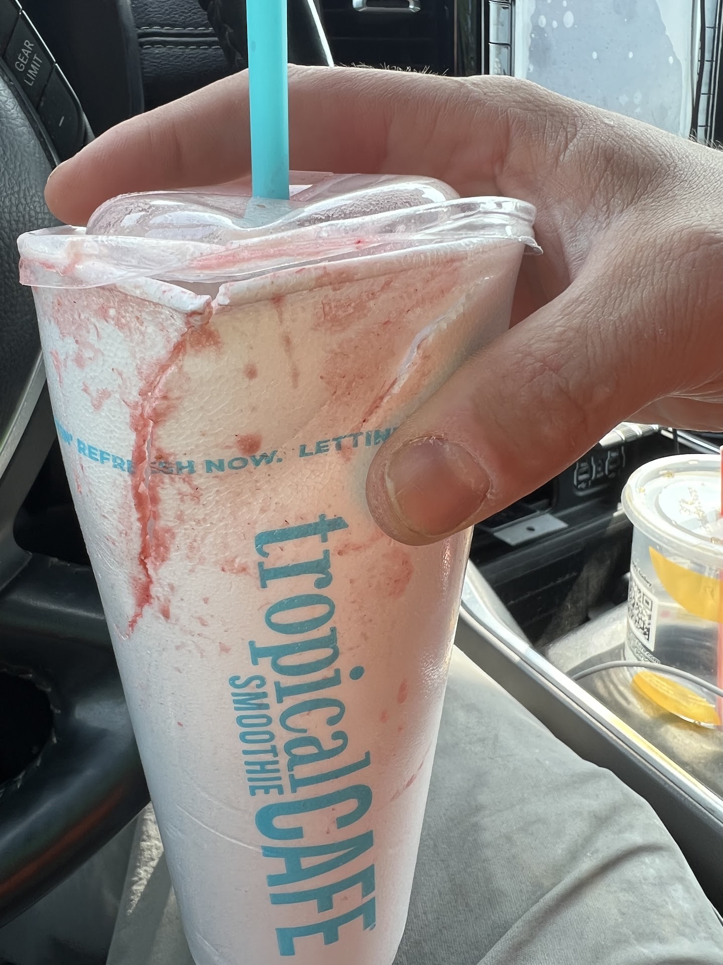 Purchased a smoothie, took it to go, saw the lid wasn’t seated properly, while attempting to re seat it, I pressed down on it and the side of the foam cup cracked and it started leaking all over, I brought it back to the register and asked Tatiana to remake it, she laughed and giggled the whole time and said she would not remake it and I would have to wait for the manager to come in in a few hours, asked for their info directly she told me she couldn’t help me and condescendingly told me they would call me when they got in. They did not, 3hrs later I called back only to have the manager mock me and say we don’t remake smoothies if someone throws it in the garbage and retrieves it out of the garbage. Wasn’t sure how that applied, after several other analogies he finally offered to remake it if i came back right now, I explained to him this occurred 7 hrs ago and I wouldn’t be back today and he said would have to be the following morning and only if he was there. Finally had enough and discontinued the call. Will not return to this location, probably won’t matter when they’re out of business, manager should be fired for teaching his employees to be combative and not take care of their customers and vehemently defend their...