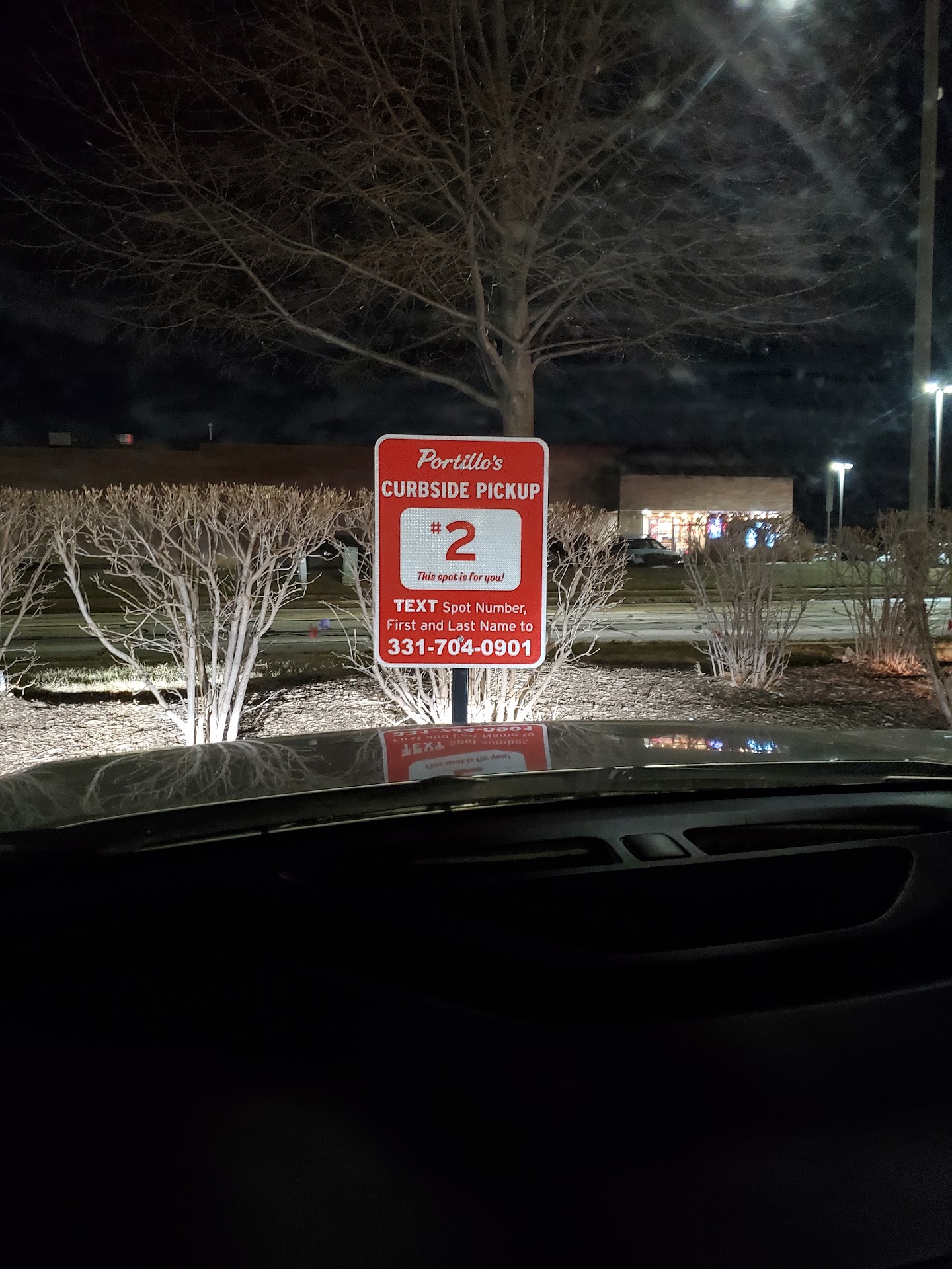 By 6:43pm, we park at spot #6 for Curbside pickup and texted.