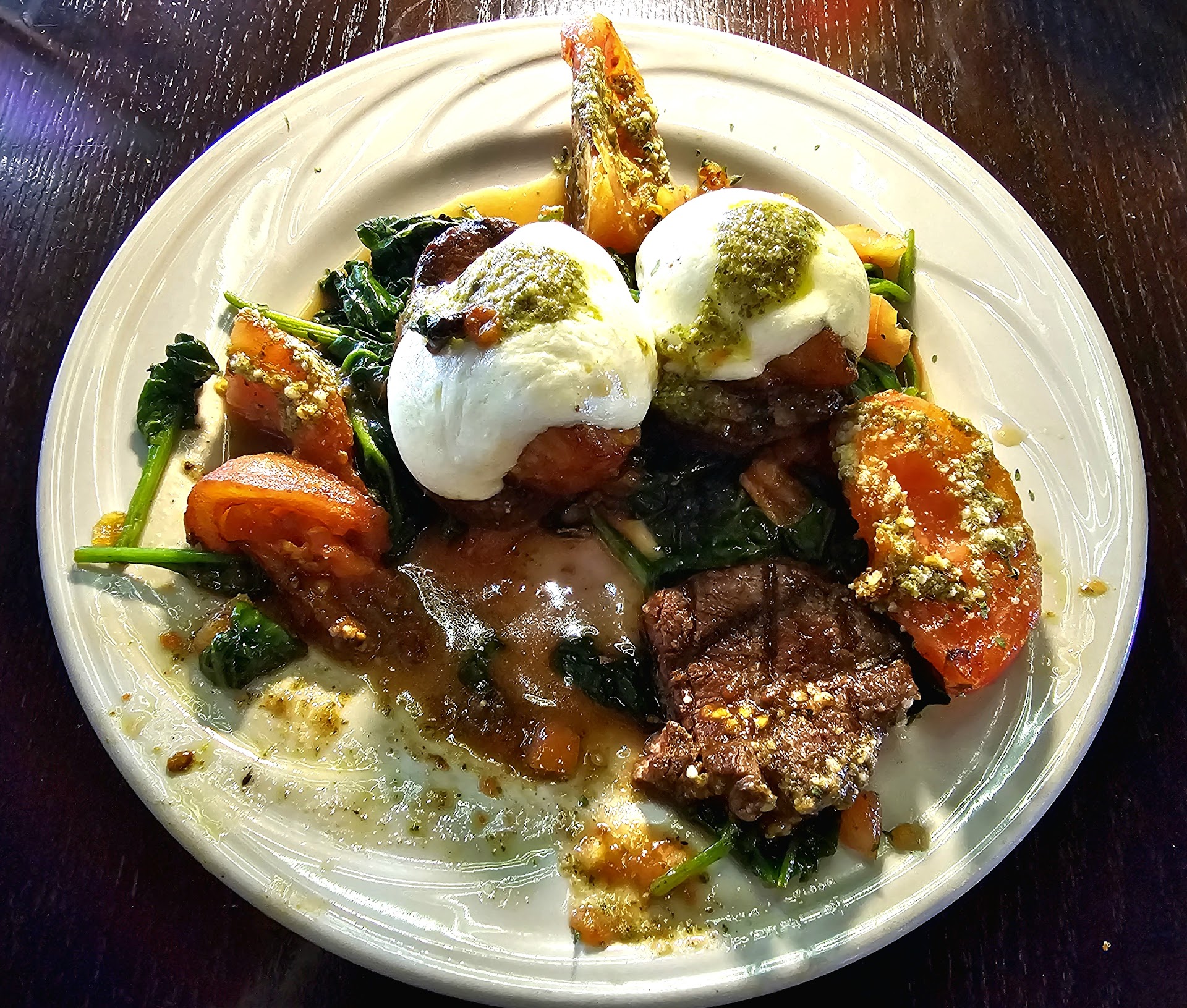 Read moreCame here totally out of the blue for lunch before fly time back to Denver. Friday afternoon around two and not many people here. The ambiance is relaxing and low lighting with a hint of upscale. The 13 TVs allow viewing from most sitting spots. Sports bar for sure. The service was swift and excellent, mind you it was not busy, but the waiter was pretty cool to talk with. The surprise for me was the quality of what I ordered. Went with the Tenderloin Caprese. The meat was cooked very nicely at my medium. The cheese was ample and great tasting Caprese with a drizzle of pesto. The Tomato slices were grilled nicely and had more pesto. A lot of spinach which tasted equally nice and a great compliment. Really good dish. A touch of salt perhaps but I didn't do it. Juicy, tasty, and would absolutely do it again! Great place to bring the boys, watch the game, and have something more...