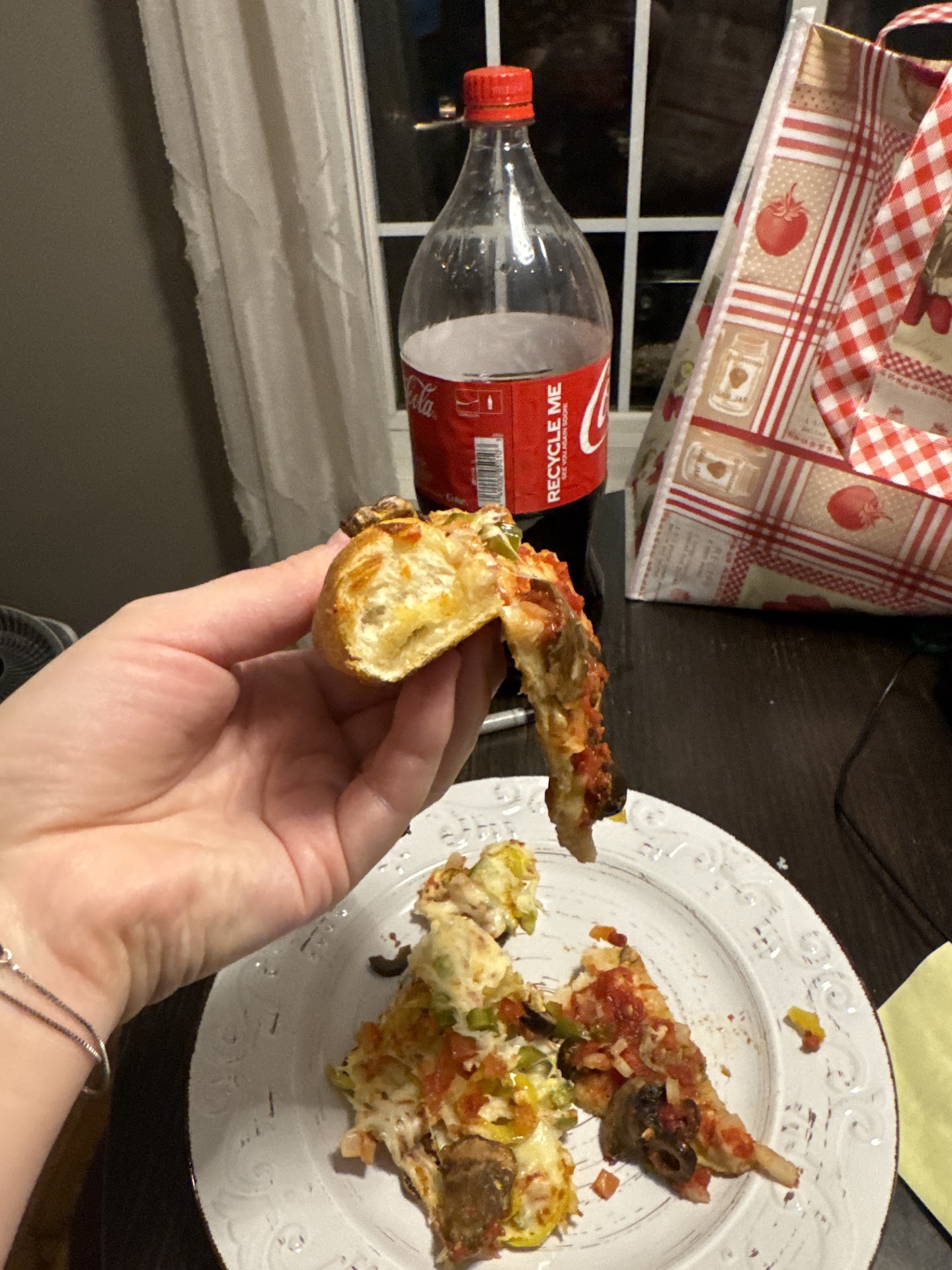 Lastly, i got to the pizza and was really excited to try the zig zag crust but... it was just a normal crust. Not sure if it's supposed to look any different or taste any different, but it was just a regular, basic crust, with no additional flavor or shape or anything. The middle of the dough was not cooked all the way through until the outer maybe 2 inches. The flavor of everything was fine. Nothing too exciting or seasoned. Wish the crust had some kind of flavor besides bread. Not really sure that I'd pay another $55 for a pizza, 4 provolone wedges, and 2 pieces of garlic bread all...