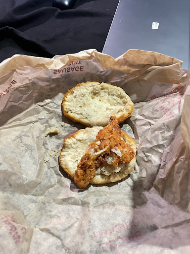 Moments later: two perfectly wrapped, warm, tangy, crispy-chicken miracles landed in my hands like a gift from the Fast Food Gods. I sat down, opened one up, took a bite…