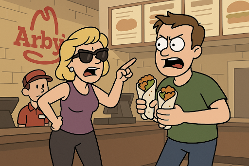 Walked into Arby’s craving something simple. Just two chicken wraps. That’s it. Two little tortilla pockets of peace. But fate, my friends, had other plans.