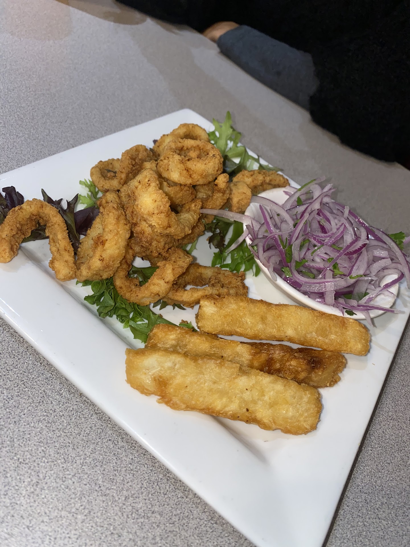 The staff was so welcoming and it felt very family-oriented. Our server hadn't tried all of the dishes, making it a bit hard to choose - but just go with your gut - because you can't go wrong! The onion relish was fresh and perfectly paired with the calamari, the chicken fried rice was smoky and bright, the fried yucca with the yellow sauce was tangy and rich, and the jumping cow was one of the best steak flavor blends I've ever had.