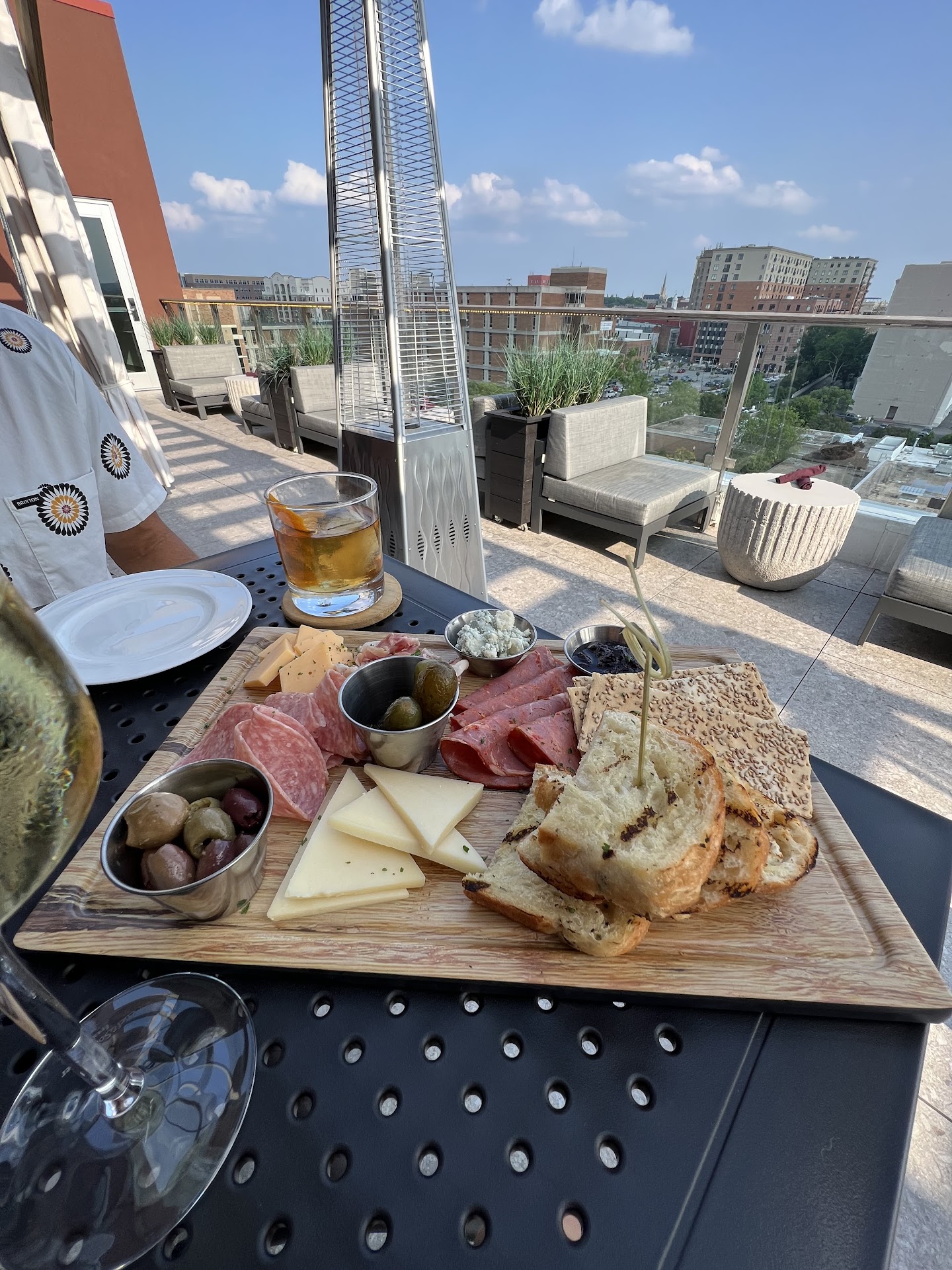 My wine (Chardonnay) was just okay. There we 2 options on the menu but was told only one was available. Not sure what was poured. Light and almost watery. That light. My husband had a smoked Old Fashioned. No complaints.
