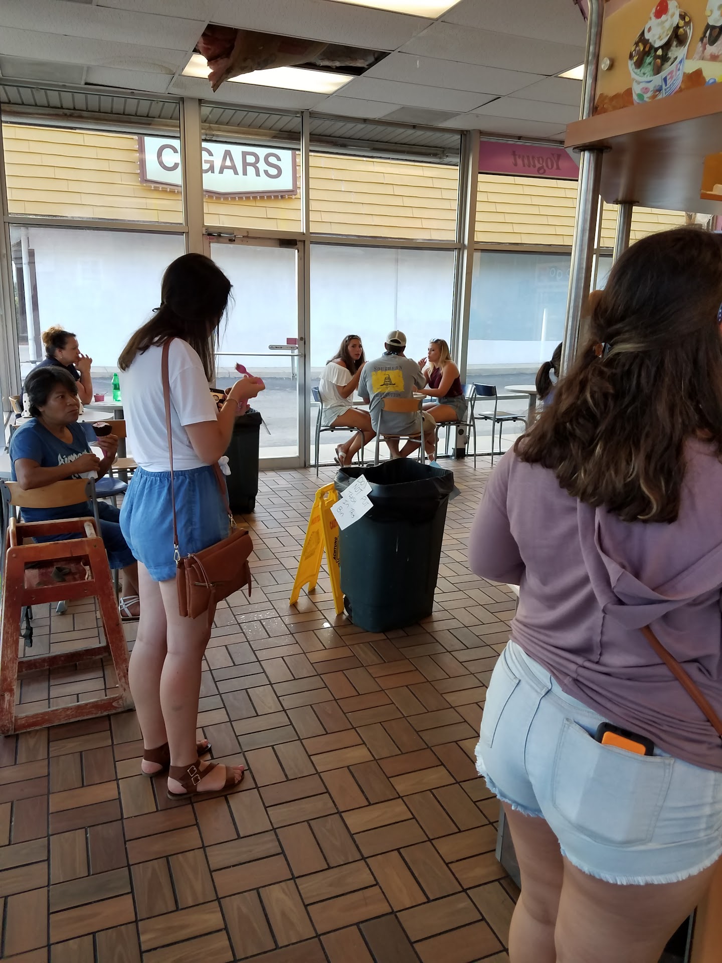 Read moreThe ice cream is alright. It certainly doesn't taste premium. I'd much rather suggest one go to Kilwins downtown. The service has been indifferent the last 2 times I've been here with my girlfriend. It's almost like they didn't care or were bothered by our presence. I'll go to TCBY across the street from now on when I don't want to go all the way downtown for frozen dairy desserts. Original post june2016.. update July 2017. It has changed ownership at least twice in that time. I have given this place several chances at redemption. No more! The service was horrible and rude and the place was literally falling apart. The two ladies behind the counter seemed bothered that our party and the few after us were disappointed by the lack of waffle cones. Their attitudes we're bad throughout the transactions. The ceiling tiles were falling in and there was a constant and steady drip of water in the middle of the parlor. Pics below. It should have been fixed immediately. It presented a safety and health hazard. The trash cans catching the constant streams of water were full of trash as well. If this is how they handle this problem how can you trust them to handle other health and...