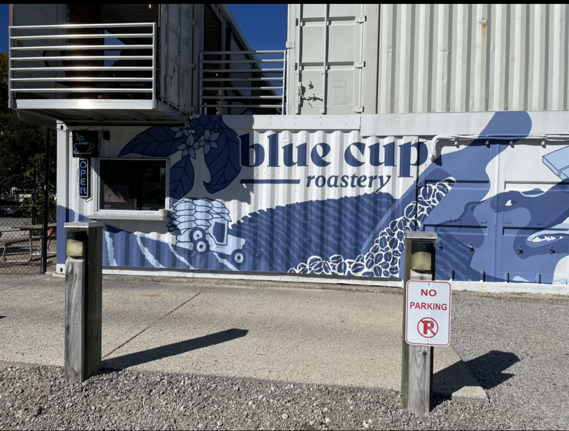 Blue Cup Roastery in Wilmington, NC, is an one for the books. It’s nestled in the unique Cargo District. The entire space is crafted from vibrant shipping containers, creating a modern, industrial vibe that’s both creative and inviting. It’s a one-of-a-kind setting that makes enjoying your coffee even more memorable!