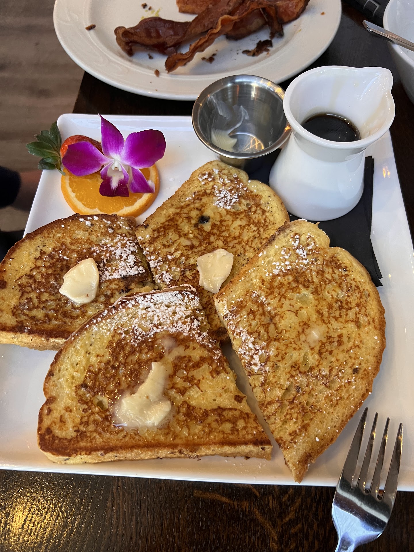 Read moreWish we could give in-between rates, this would be a 3.8 Stars versus a 3. Three, only because it is not a solid 4-star experience. Beautiful ambiance, the hotel it is located inside, The Ballast Hotel and how it is positioned on the water. Very tranquil, sexy and romantic, especially at night. Milieu aside, the food is ok. Grits were watery and rubbery, go figure. Asked for Cheese Grits and "literally" had 4 shredded pieces, unacceptable! Eggs were cooked to request, scrambled and seasoned well. Biscuits are fluffy and very rich because they are doused in butter. They are made of a good fat, either lard or butter that makes them flaky. They also slice and sear each in piece in butter; Oh, the richness! The sausages are savory and were cooked hard, the way we like but extremely sybaritic. Could only eat a piece of one but they are delish! Hashbrowns are shredded, crisp and savory. The French Toast is thick eggy Brioched slices of warm spiced toast served with a hint of orange zest, lots of butter and warmed Maple syrup. They have a variety of juices, including Pineapple and Cranberry. Overall, Service is swift, efficient and congenial. Good place for a...
