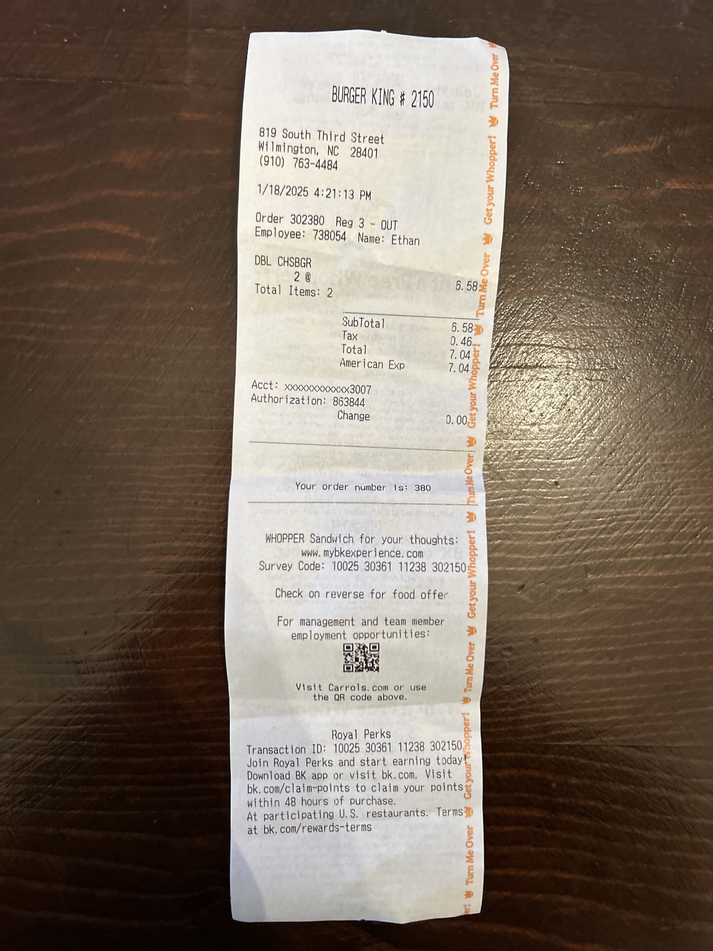 Read moreThis 3rd street Burger King in Wilmington is a travesty. First of all no one greeted me. Then someone finally came to the front register. The manager. I speak clearly and enunciated my words well. I asked for a Philly Melt. The guys in line before me said that they had been waiting for 20 minutes. I gasped. Thy said, Wait it gets better"! They told me to look at the guy making the sandwiches. I'm the Ultimate observer especially when it comes to my food! This dude had one glove on. The told me he had been touching EVERYTHING!!!! I watched him touch raw meat and cooked meat without changing gloves. The guys in line told me how he flipped the wrong part of the bun causing the sandwich to fall apart and wrapped it anyway😳😳😳🙅♂️! And IT WAS MY SANDWICH😳😳😳.It was at that point that I asked an employee that was clocking out how long my refund would take to go back on my card. Why ask why. I'm sorry to say that she looked like she didn't know what she was talking about and it showed. She said it could take two weeks😳🤣. I asked the manager for a refund and the money went immediately back to my card. Everyone that worked there that day needs to be retrained or fired. I wouldn't buy food there if it was the only restaurant open and I had no food in the house!!! Food safety and customer service...