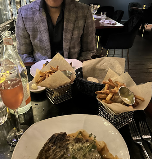 After about 20 minutes, a bartender, not our waiter, brought our meals. I inquired about the bread, which eventually arrived, but by then, the service had already begun to sour. I ordered the Steak Frites, expecting a high-quality meal given the $42 price tag. What I received was a thin, flavorless ribeye that was tough and chewy. The lack of a proper steak knife made it even more challenging to eat, and I had to flag down a staff member just to get one. Throughout our meal, not a single person checked on us to see if we needed anything – not even another beer or a water refill.
