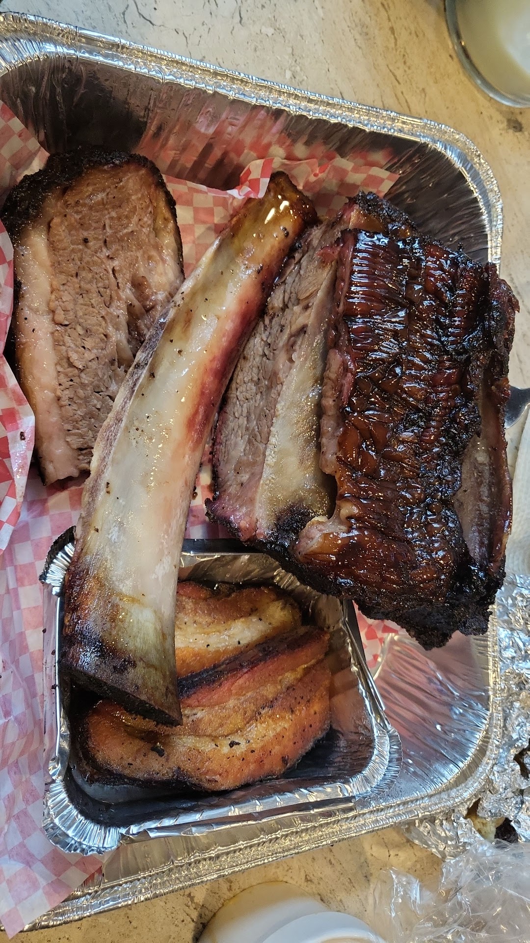 Cons: -Prices are a bit steep, for the portion sizes that they give I wouldn’t call it the best value. -We were third in line but they messed up prioritizing which orders to make first so people that came after us got potato salad and by the time they got to our order they ran out. -They’re new and still working out small business woes, they weren’t open at 12:00 so we had to come back at 2:00. They also ran out of many items on the menu including beef ribs, corn bread, potato salad, Roasted potatoes, roasted carrots, and brisket chili. -Some of the meats needed more seasoning and smoking. The ribs in particular lacked a nice bark or coating of dry rub. There was some but overall it could’ve been more flavorful. -A 2-meat combo dinner for brisket and pork ribs came with the same amount of beef and pork ribs as the sampler. The 2-meat dinner is 27.99 but for 29.99 in the sampler you also get a quarter of chicken and a good amount of pulled pork too so the 2-meat combo was not worth the price. -It was a little disappointing that we were one of the first customers for the day and ordered the pork belly sandwich when no one else did then after we ordered they proceeded to offer people free samples of it. This was offered free to everyone there except us… -Mainly takeout, inside is quite small -Rude responses received from one of the owners, Erica. Very bad customer service.