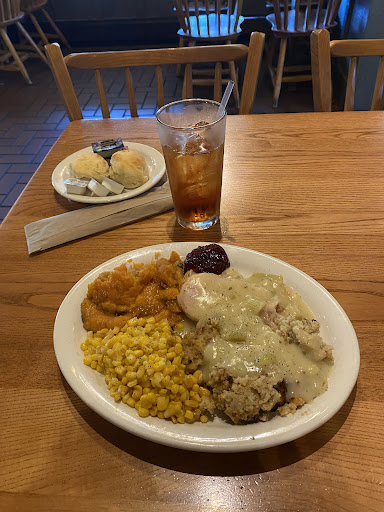 Read moreI rarely write reviews for places unless I was heavily impacted by my experience. This location impacted me in a very negative way. Just a downright awful dinner I had last night and I’ve had plenty of good experiences at other CB locations and was excited to come since last time I went a few years ago it was great. First off they were just out of so many things and instead of any manager taking responsibility they made these poor waiters have to tell everybody. Every manager I witnessed in that restaurant needs to actually do their job. From my experience in working in restaurants that kind of behavior would’ve gotten you fired. Even the food was just not the same as I remembered. Not sure if the chain went downhill or just this location. Chicken and dumplings were still somewhat likable not as good as i remember and hash brown casserole was pretty flavorful but really greasy but my mashed potatoes and Mac and cheese were horrendous!!!!! First off what smooth brain gave me ice cold Mac and cheese and I would’ve gotten more flavor from sucking on an ice cube than those mash potatoes. After all those complications my waiter Bowie, the only good experience out of this night, offered to add on an extra slice of their Coca Cola cake no charge. I’m not huge on sweets so didn’t eat too much of it but it was pretty flavorful at least but nowhere near warm like advertised. Once I finished what I could stand eating from my plate I decided to step out in the parking lot for some air since I weird about what I just experienced. They do have good space for parking I’ll give them that. However after I stepped outside I spent about 20 minutes behind the bushes in the back of the parking lot VOMITING the food I just consumed!!!!! BOTTOM LINE DO NOT COME HERE EVER!!!! We should be tearing down places like this instead of ruining locally owned spaces to put up new shopping areas for our rich and growing city🙄🙄 Also I’m still up at 5:30 am trying not to vomit as I right this review. What a shame this place...