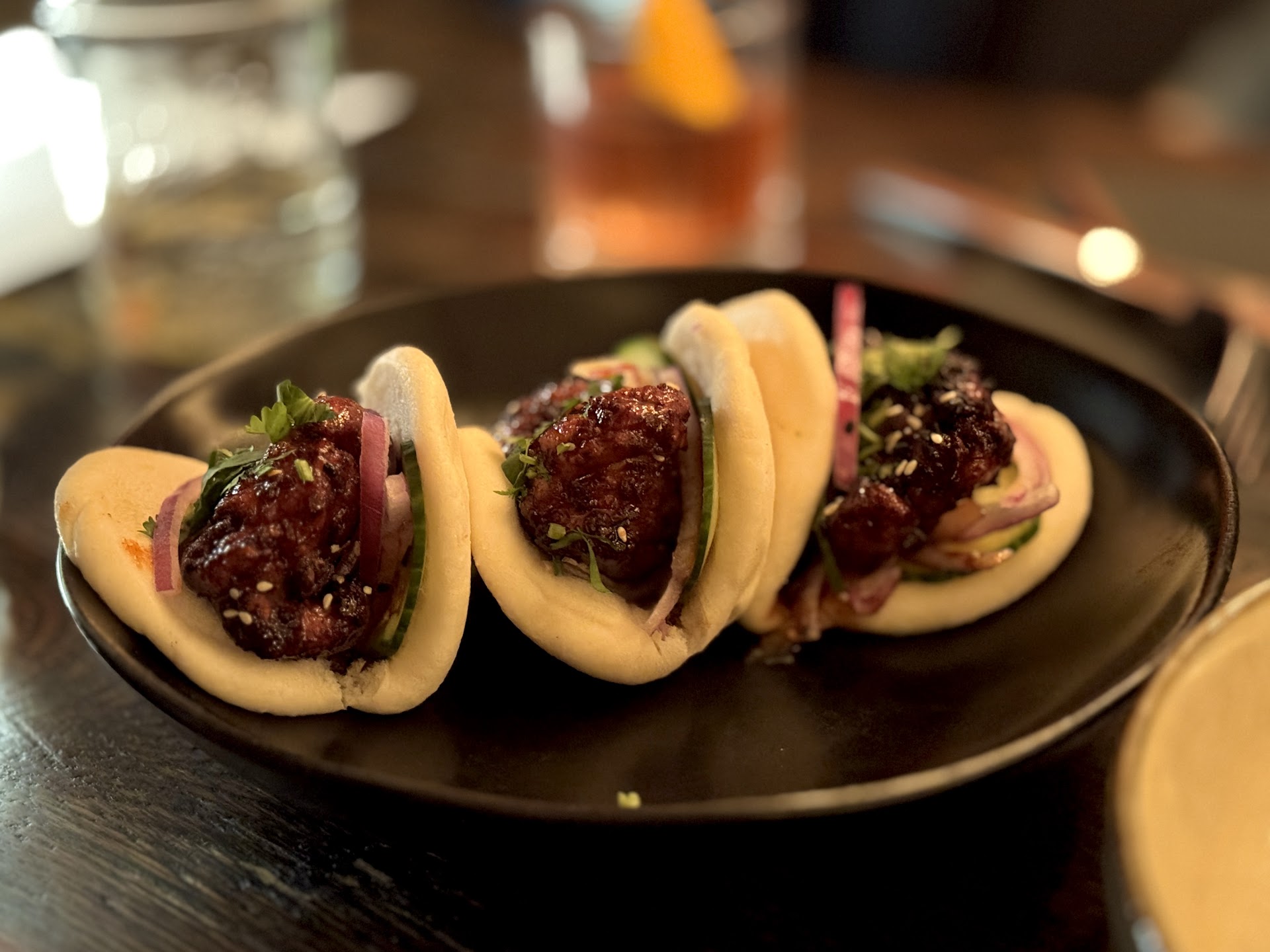 On our latest visit, we ordered the grilled octopus, Korean fried chicken bao buns, and the roasted mushroom pizza. The octopus was outstandingāperfectly tender with a tamarind glaze and curry-cantaloupe purĆ©e that elevated every bite. The Korean fried chicken bao buns are a must-have every timeāconsistently flavorful, crispy, and satisfying. The roasted mushroom pizza didnāt disappoint either, delivering rich, earthy flavors with a beautifully crisp crust.