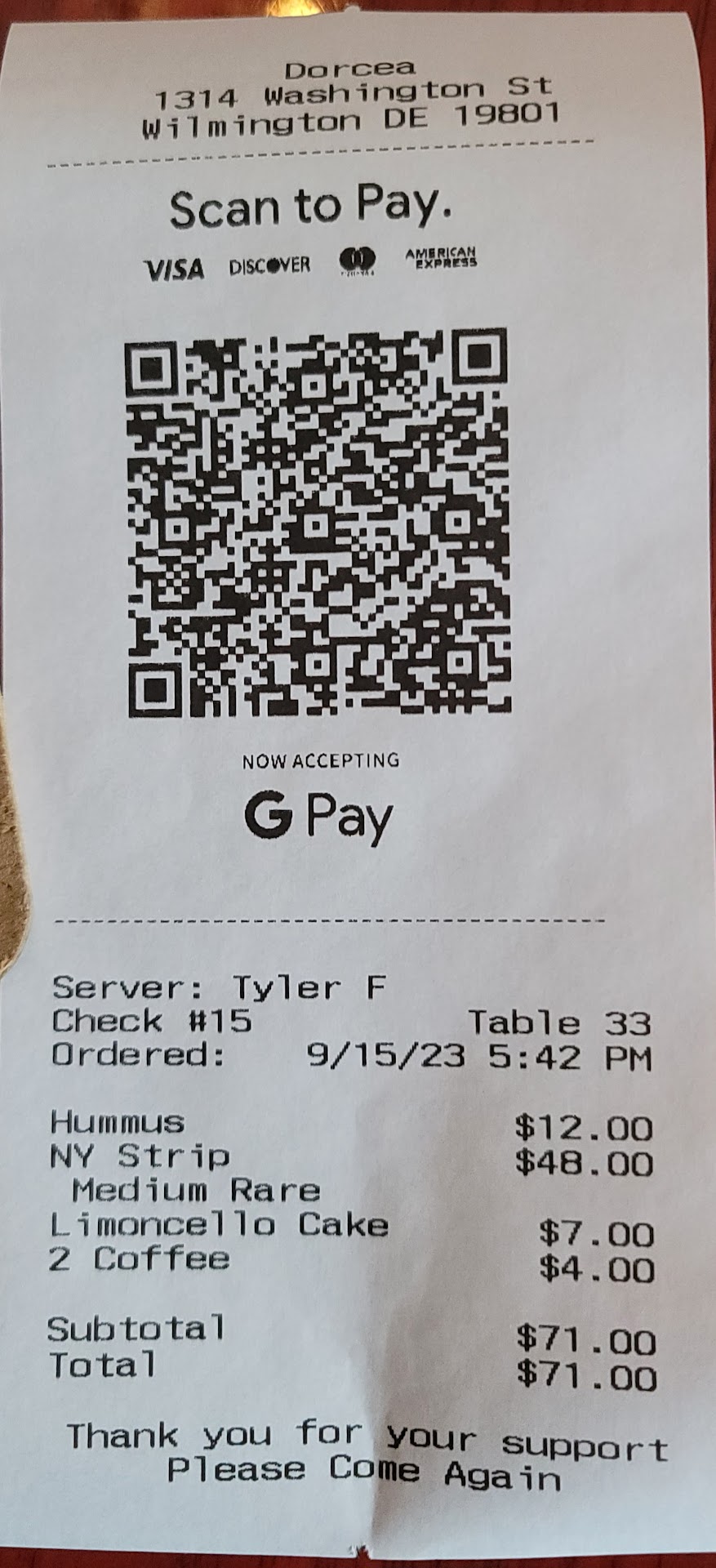 The decor and ambiance were lovely, even as busy as it was on a Friday night. And, though it was busy, we never felt rushed or forgotten by the staff.