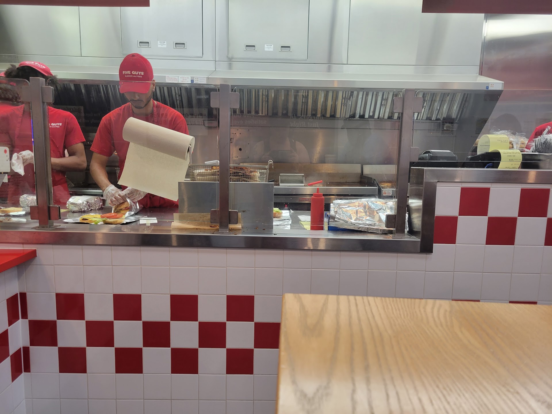 Read moreThis is an authentic 5 Guys experience in Wilmington NC. The heaping fries, the tasty cheeseburgers fixed "all the way" but hold the mayo. There's no more roasted peanuts since the pandemic but I always preferred mine in a Snickers bar. I remember eating at the original 5 Guys in Arlington, Virginia (now gone). Customers had to know where it was because it was around the corner and so small. Only 4 people could stand inside at a time and one of them was dodging the door and the delivery guy. Good food, everyone likes, shouldn't change with time. Great shakes, scrumptious hearty cheeseburgers, and fries - all at one place - is hard to find. So, when I travel to Wilmington, this 5 Guys is definitely on my foodie list. Are all 5 Guys...
