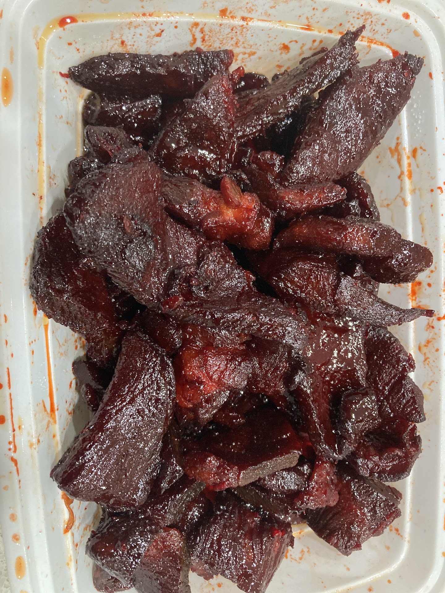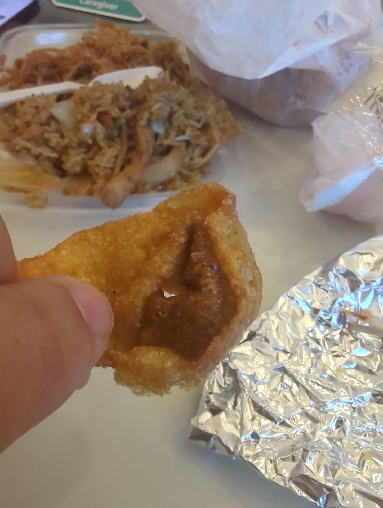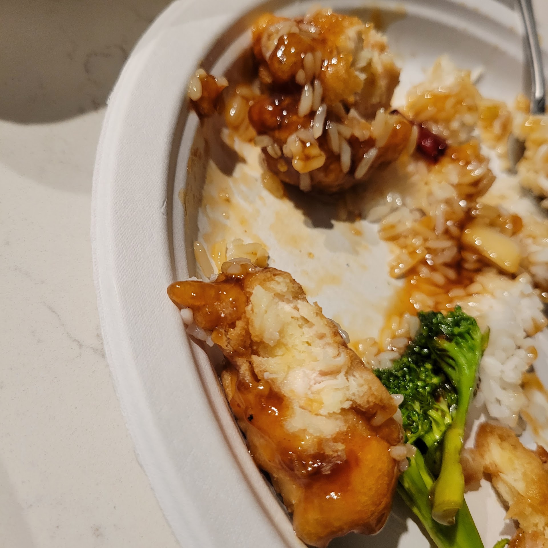 Previous review: I requested white meat chicken General tso and this breading filled ball (with a crunchy exterior with sauce covering) it is what I received instead. I have no idea what I just bit into. It had no taste and resembled couch foam. Our other order of dark meat General Tso chicken didn't have the foam-like filler in it. This disgusting meal cost $25 for the two orders, too. I'm not even sure what it was. I never ate it after repeatedly opening up the balls and finding the "flavorless foam"...