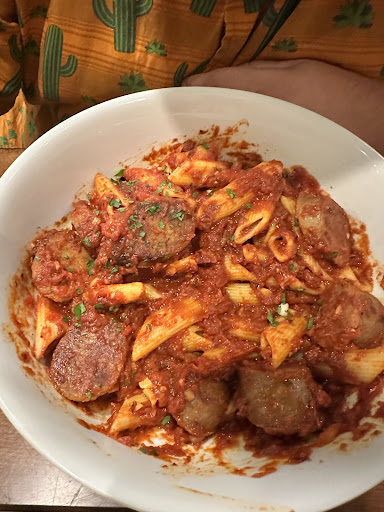 We both got pasta - my boyfriend got the Arrabiatti. He thought it was good and very spicy. He has a severe dairy allergy and unfortunately, that left him with 4 options pasta wise. The Italian place we go to regularly, makes everything so fresh that the chef can adjust and remove dairy from 85% of the dishes if need be. So this dish, while he enjoyed it, was the only one that he could eat and enjoy.