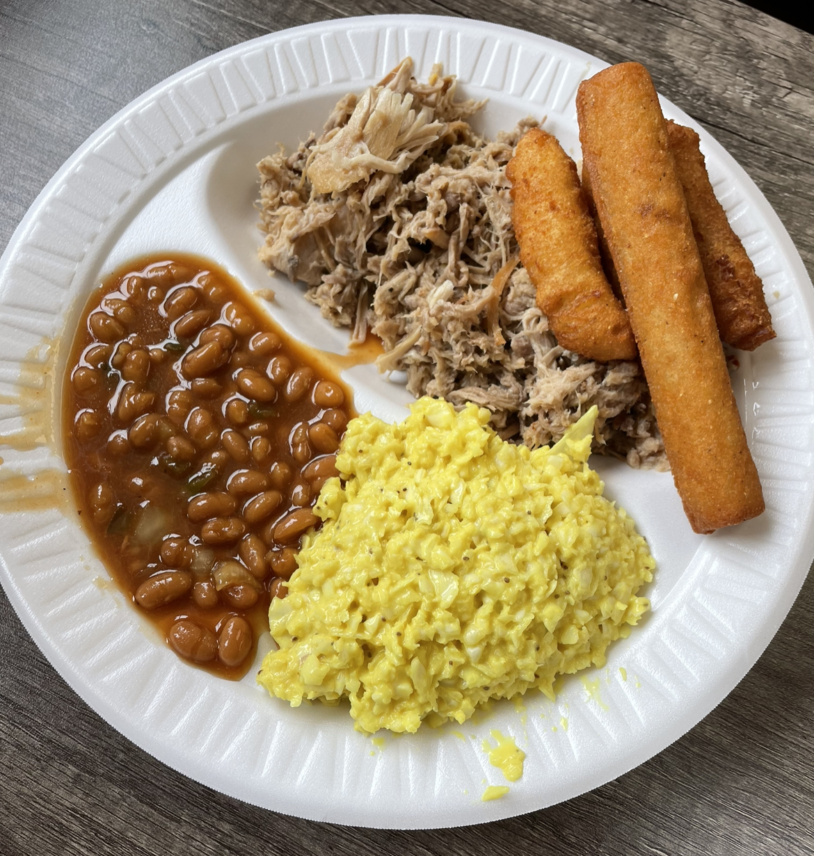 Read moreFirst time at this restaurant. I love my BBQ and read reviews about this restaurant. The service was impeccable and could not ask for better. The decor felt like a southern nice rib shack. The BEST hush puppies and fried okra, that I have tasted in a long while. Fried okra is usually over-dry. The baked beans were made with green peppers and is not your typical sweet baked beans. The coleslaw tasted like it was made with horseradish and they chopped the slaw into tiny bits, like in a food processor. It was a very yellow coleslaw with a very horse-radishy flavor. I love coleslaw but this is the first in my life from a restaurant that I could not eat it. The mac-n-cheese were also ok not great but edible. The country fries were very good, steak fries.
