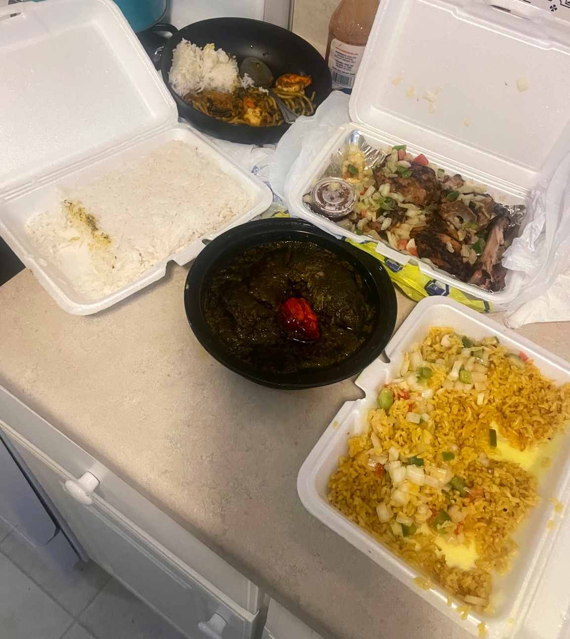 Read moreFood: lacking flavor, I was surprised and disappointed to see them warm everything in the microwave and in styrofoam. The âjollof riceâ tasted like Chinese fried rice I have never felt so misled⊠false advertisement! The cassava stew was okay but the rice was over heated in the microwave and ended up hard and crunchy Overall food tasted like left overs