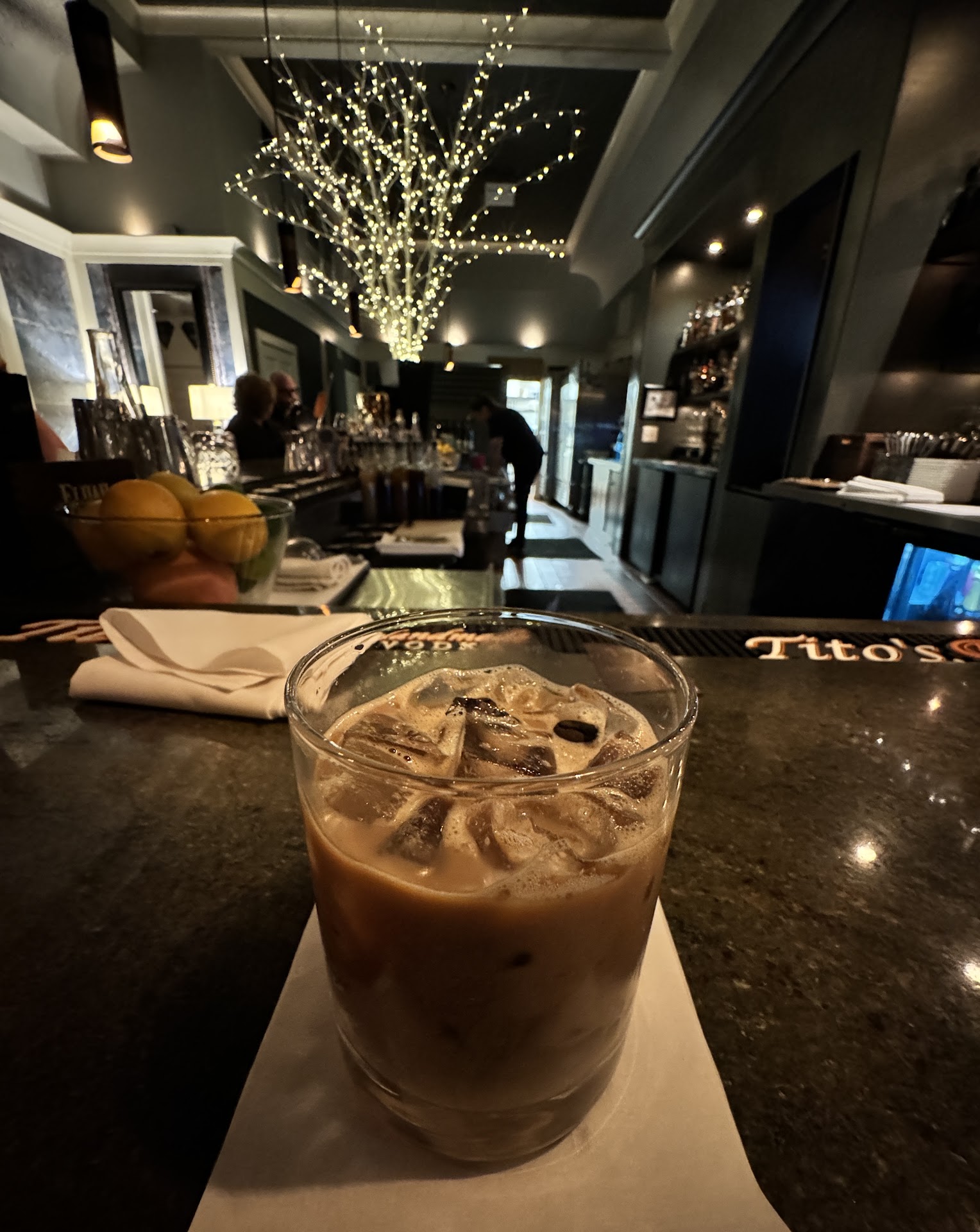 Inside, the space is warm and sophisticated, with exposed brick, soaring ceilings, and a striking green granite-topped bar that sets the tone for what’s to come. Their cocktail program is daring, handcrafted, and unapologetically bold—featuring clever names like Mama Tried and World Traveler. Even the mocktails get their moment under the banner “They’re right here, Jim.” The wine list is extensive, and if you're a fan, it’s worth asking about their wine club.