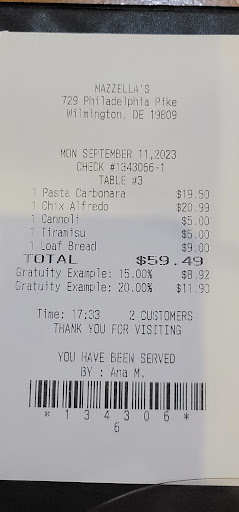 Ā Ā Ā Read moreI have had both take out and in person dinning here. I'll start with the dine in experience. Not much atmosphere, but neat and clean. I had the Spaghetti With sausage. The meal was ok not one of the best red sauces in the area though I have had better. I also had the Antipasto Salad it was very good. The portions for both the salad and Spaghetti were huge way to much for me to eat in one seating. We decided to try their pizza for take out one night and we were not pleased. We ordered a cheese pizza with sausage, mushrooms, green peppers and black olives. The pizza was covered with the topping so much so that I could not taste the sauce or the cheese. The green peppers were not cooked through. I don't know if it was because of all the topping but the crust was soggy. This is one of the worst pizza experiences I have had in this area. Also we ordered the Antipasto Salad again and ask for it chopped, which cost an additional $2.00 and it was not chopped. I would suggest you try dinning in, however parking may be difficult on...