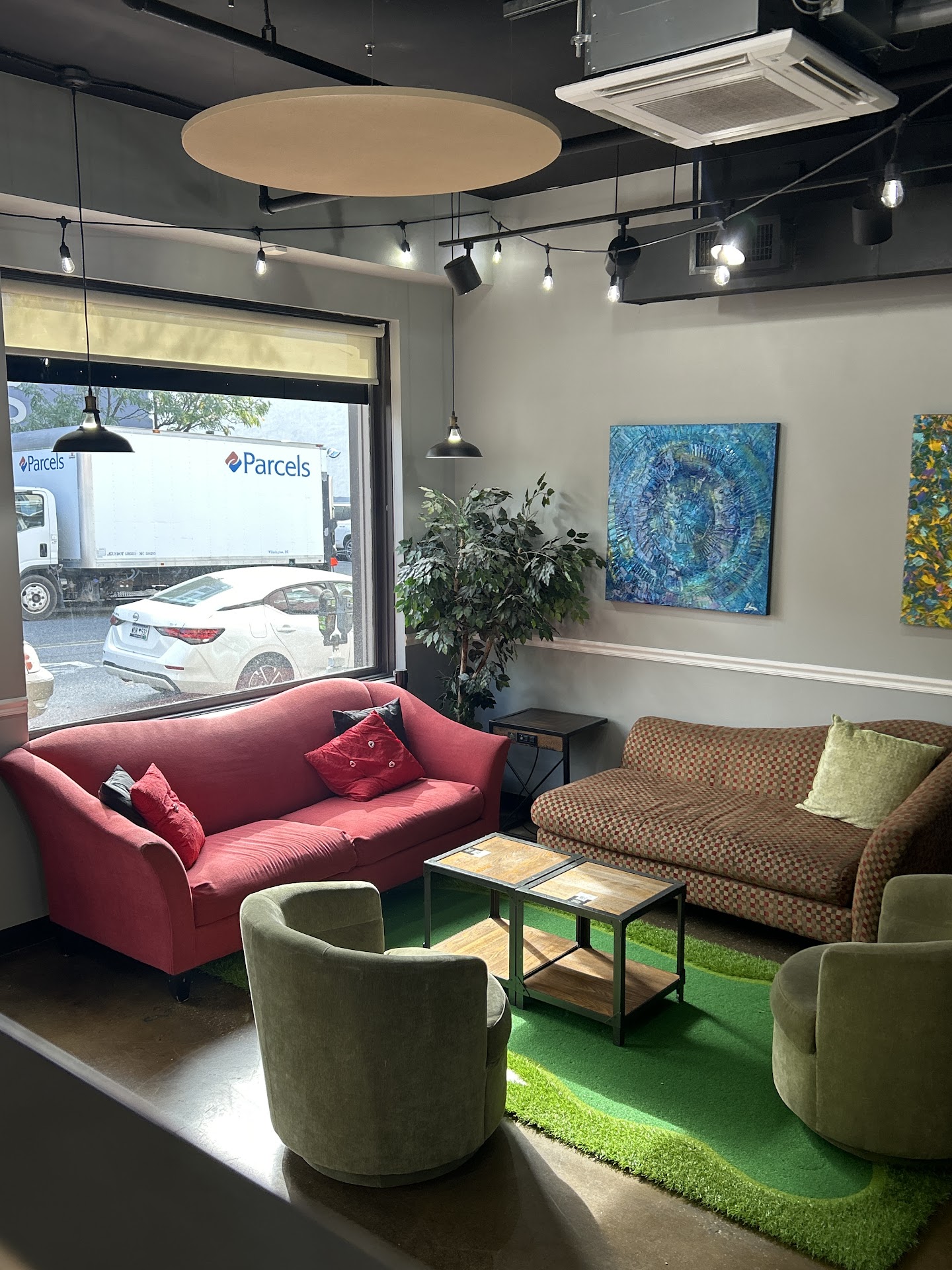 The café itself was quite spacious for a coffee spot, with the added bonus of displaying local artists’ work—great if you’re into the art scene. The staff was fun and bubbly, though it felt a bit chaotic at times, with multiple customers talking at once to the two-person team behind the counter.