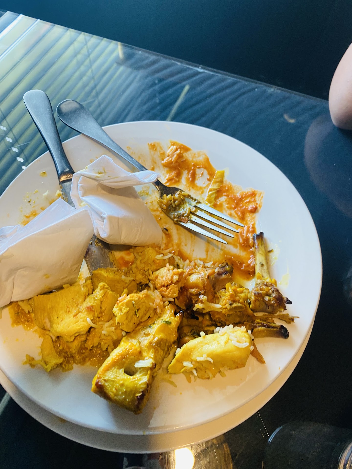The Tikka Massalla was like a Tikka Massalla soup. It was watery and more like a gumbo which I almost added the rice into the bowl to eat it like a gumbo. We has ordered one medium and one mild but the person who brought it out didn't know which was which and I honestly believe that they were both mild as there was no difference. We were given no napkins and we never saw our server again for the entirety of our dinner, only to give us the check after asking a separate person for it. I also had to get a drink refill from the person working the front desk.