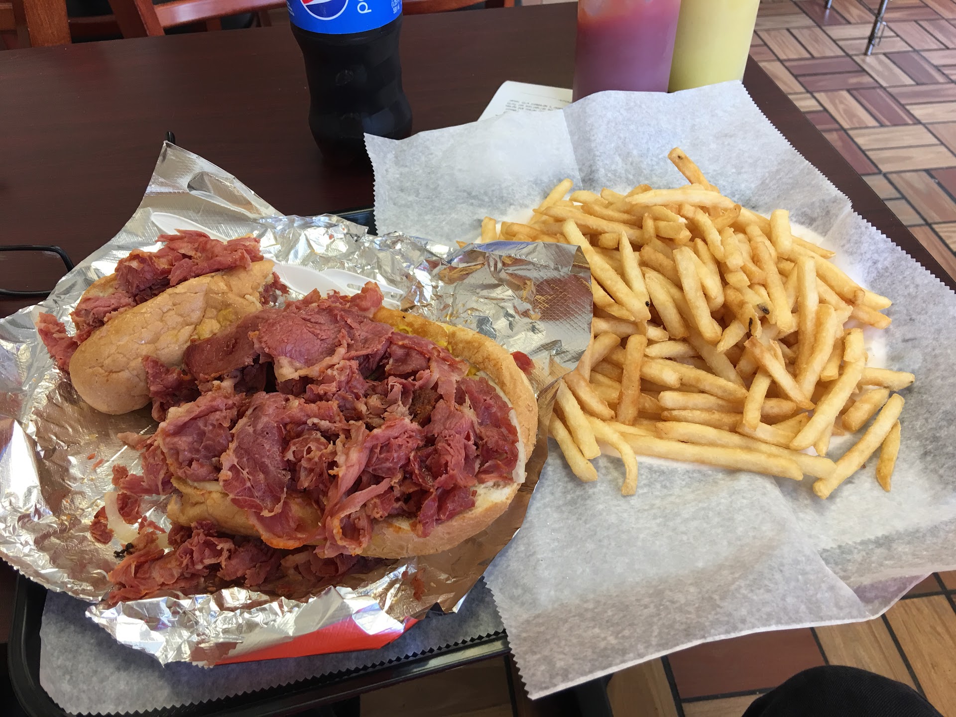 The pizza was ok, not great. The "sheet pizza" was actually two smaller sheets, so more crust than you'd expect. Came across like a large version of elios frozen pizza.