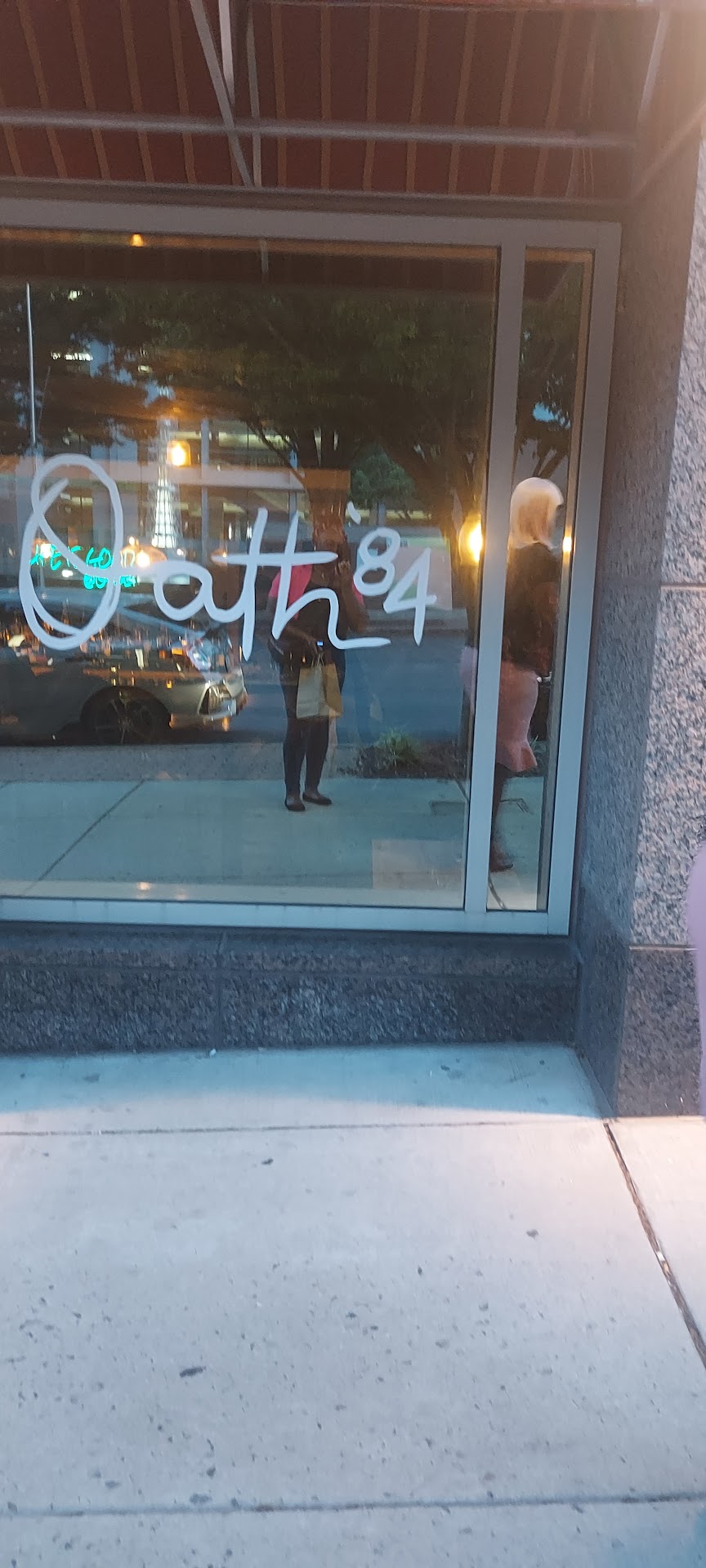 My wife and I braved a snowstorm, two hours, and icy roads to celebrate her birthday at Oath 84, and it was worth every white-knuckled mile. Arriving past sunset, we snagged a prime spot out front – a tip: street parking fills fast after 6 PM, so reservations are your best bet (which we wisely had).