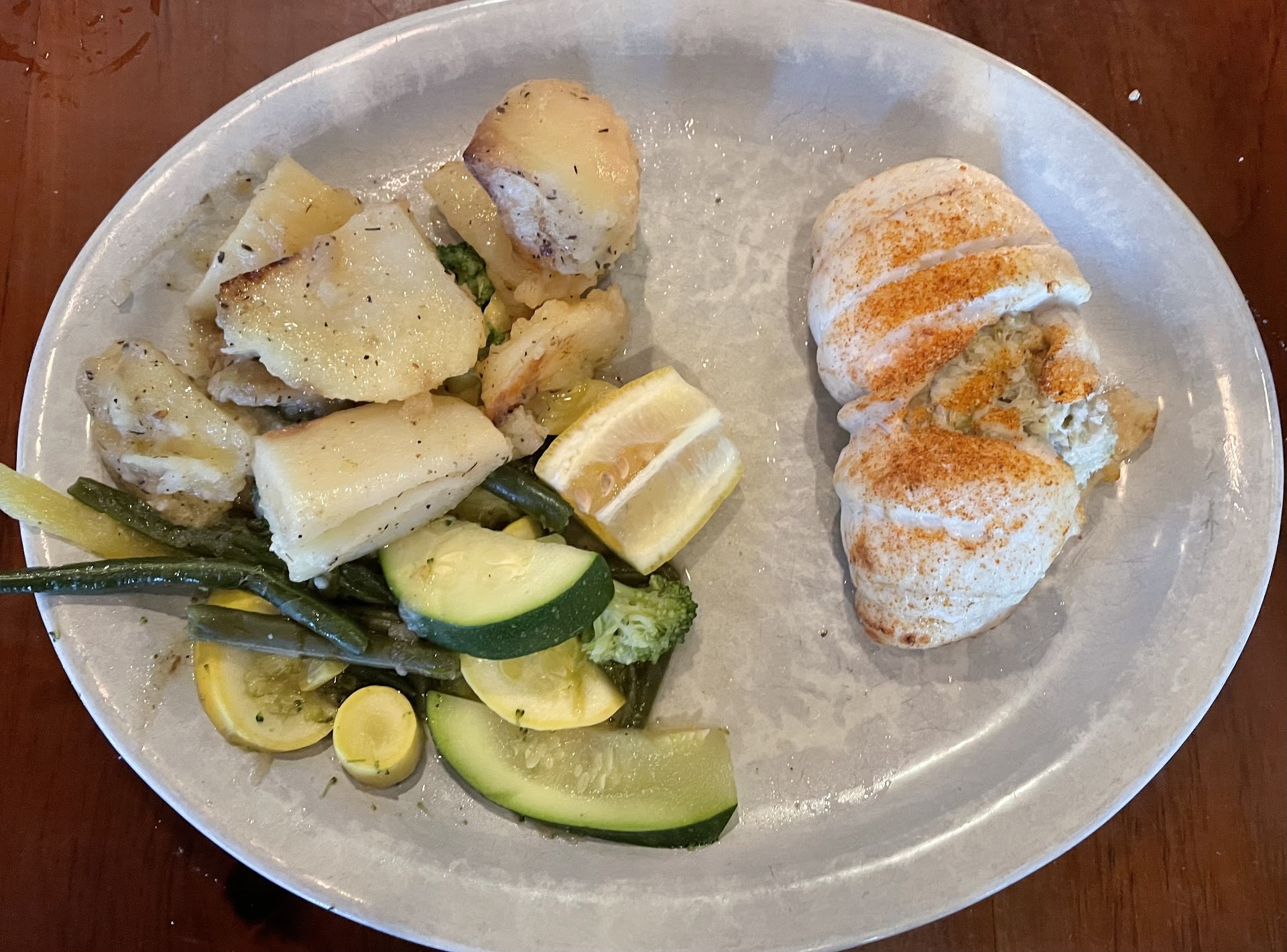 Read moreMy husband and I really care about supporting local restaurants so it pains me to give one a bad review, but wow, this was the worst meal I’ve had in quite some time. We ordered takeout through a local delivery service and both selected seafood entrees that run around $25 each, so our tab was more than $50, just for food (not including delivery fees or our driver’s tip). The menu specified that each one would come with a vegetable medley and either potatoes or rice pilaf. We both selected rice pilaf. When our food arrived we were shocked by how small the portions were. I’d say maybe 4-6 ounces of seafood in each entree. Not a vegetable to be seen. Just a small portion of pale fish and a scoop of pale rice. No sauce or remoulade or garnish or anything. It reminded me quite a bit of hospital food. My husband ordered a side of fries that were puny and soggy. I ordered a Greek side salad that was big droopy leaves of iceberg lettuce, not even cut into bite-sized pieces. Overall a total ripoff and we were still really hungry after our bland,...