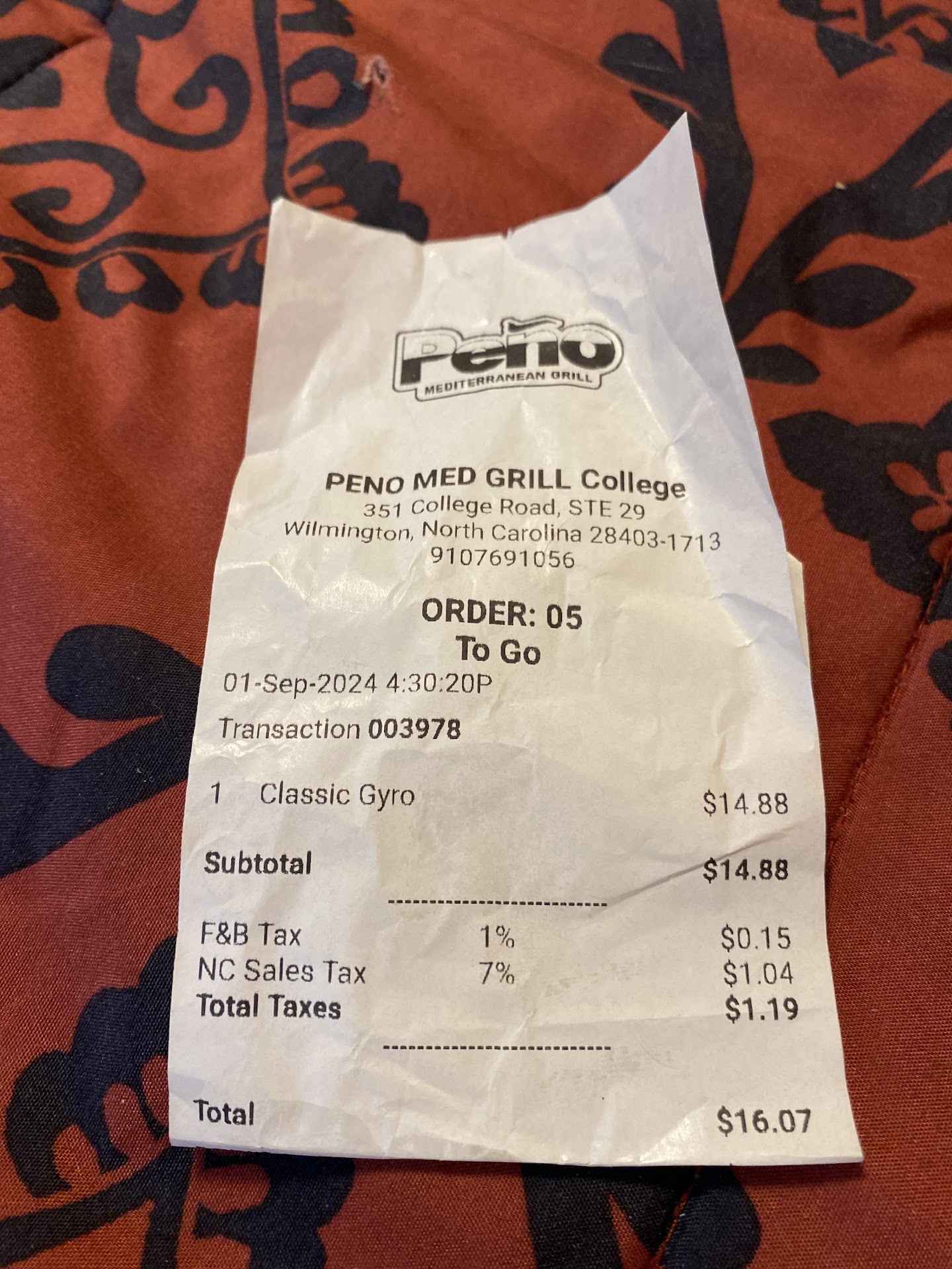 Ok...Peno is the real deal all around! Recently grabbed lunch here since I had a hankering for an authentic, Greek Gyro. Since options in Wilmington appear to be very limited with Mediterranean / Middle-Eastern eateries, Peno has a nice reputation for delivering wonderful food and fast, pleasant service...consistently. I completed on an online order for pickup, using mobile pay, ready in 15 mins and bypassed a wait in a very busy S. College location.