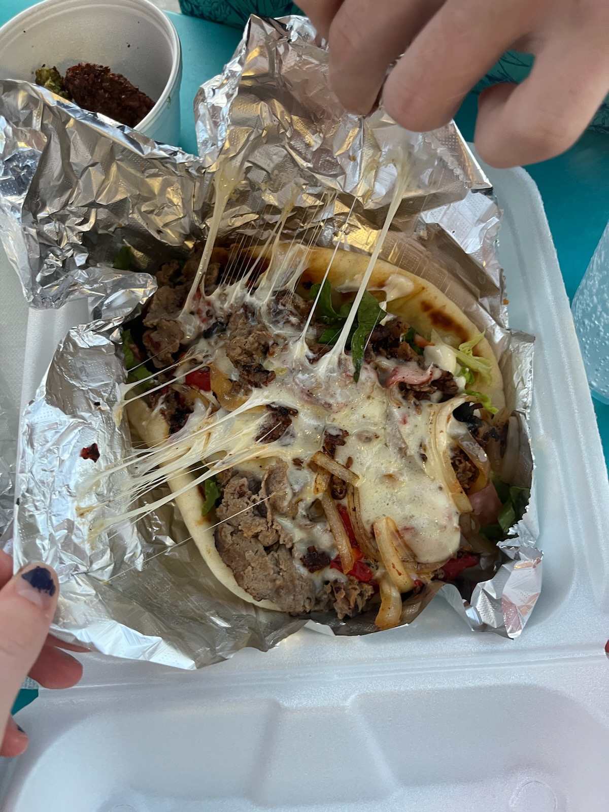 FOOD: The Greek Gyro. My dear Lord this thing is monstrous, packed, stuffed and every other type of condensing word you can use. The combination of beef & lamb meat, marinated and cooked wonderfully, melts in your mouth. Combine this robust flavor with fresh feta cheese, black olives, house-made tzatziki sauce, red onion and the oh-so fresh pita bread...and then deliver that same pita bread with the freshest hummus I've ever had...and you're in bliss. Refreshing bites combined with light cooking oils will take your palate into Mediterranean utopia. SCORE: 5 STARS!!