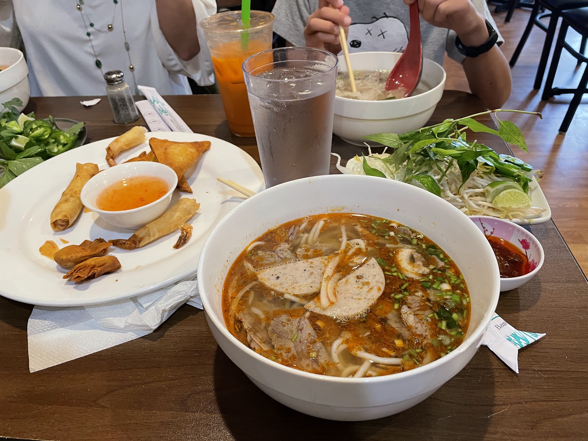 Read moreWas looking for some Vietnamese food while visiting Wilmington, and this place did not disappoint. Started off with the fried sampler, which was a great deal with a bit of each of the deep fried appetizers. Everything was fried well, not super oily and the sweet fish sauce dip was really good. My main meal was the spicy beef noodles (bun bo hue), and it was delicious. The portion was good, albeit the noodles to meat ratio was skewed toward noodles. The broth was great, ery authentic, and the lemongrass chili they give you on the side, set it off for me. They even had Vietnamese coriander, which I rarely see provided at other Viet place. My kid had the pho dac biet (special) and loved it. I tasted the bone broth and it was very flavorful. My other kid had shrimp fried rice and was happy they didn’t cheap on the shrimp and gave a large portion. His fried rice was great. My wife had the vegan pho, which she said was just okay because it was on the sweet side. Overall, really enjoyed the food and the staff was super friendly. Definitely...