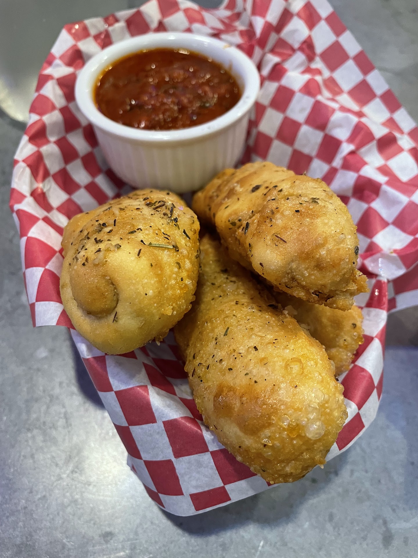 When you walk into the restaurant, there is a loud chime to alert the staff that someone has walked in because there is nobody at the hostess counter. It seemed very odd, but we continued on in and hoped for the best. This space has been totally changed from what it originally was. The original restaurant that was at this location had a charming vibe and a beautiful bar. Now, this place feels very strange and confused. When I was sitting in there tonight (12/17/23) looking at a random small TV on the wall that only played ads, I could not believe I was in the same restaurant that used to be downtown. Their location downtown had a lovely atmosphere and a fantastic bar. This version of Platypus & Gnome would fit in better at Carolina Beach. I am not saying that negatively; I am just trying to describe what it is like. There is a random L-shaped couch in the middle of the restaurant. I assume the previous pizza place put up the brick divider wall. It used to be an open-flow and had a charming bar where now the gelato area is. We sat at a table that was right at the entrance of the Gelato area. Looking to my left, I could see right into the workstation area behind the gelato counter, which was some storage, a trash can, and a dirty floor.